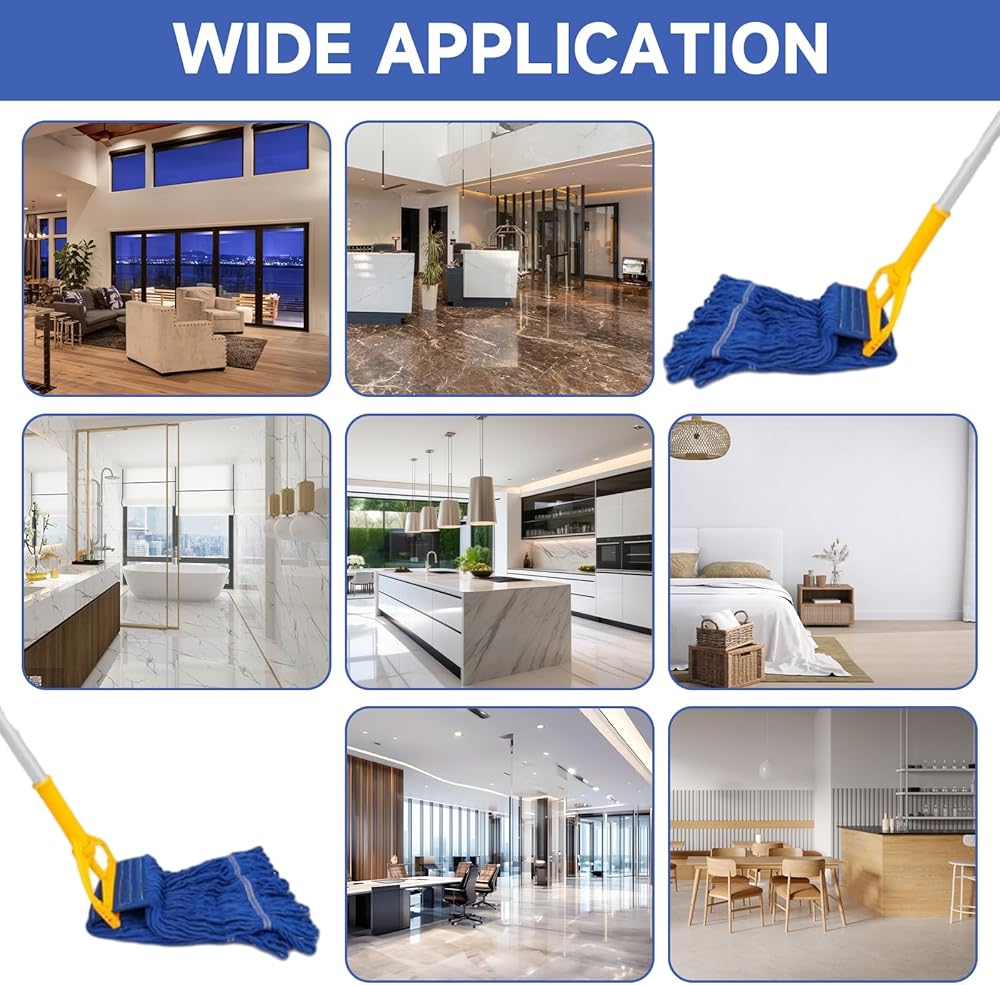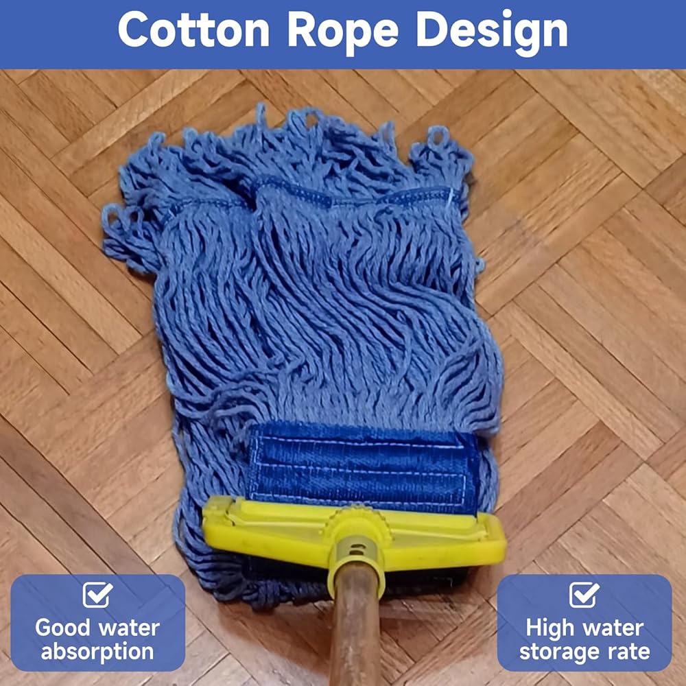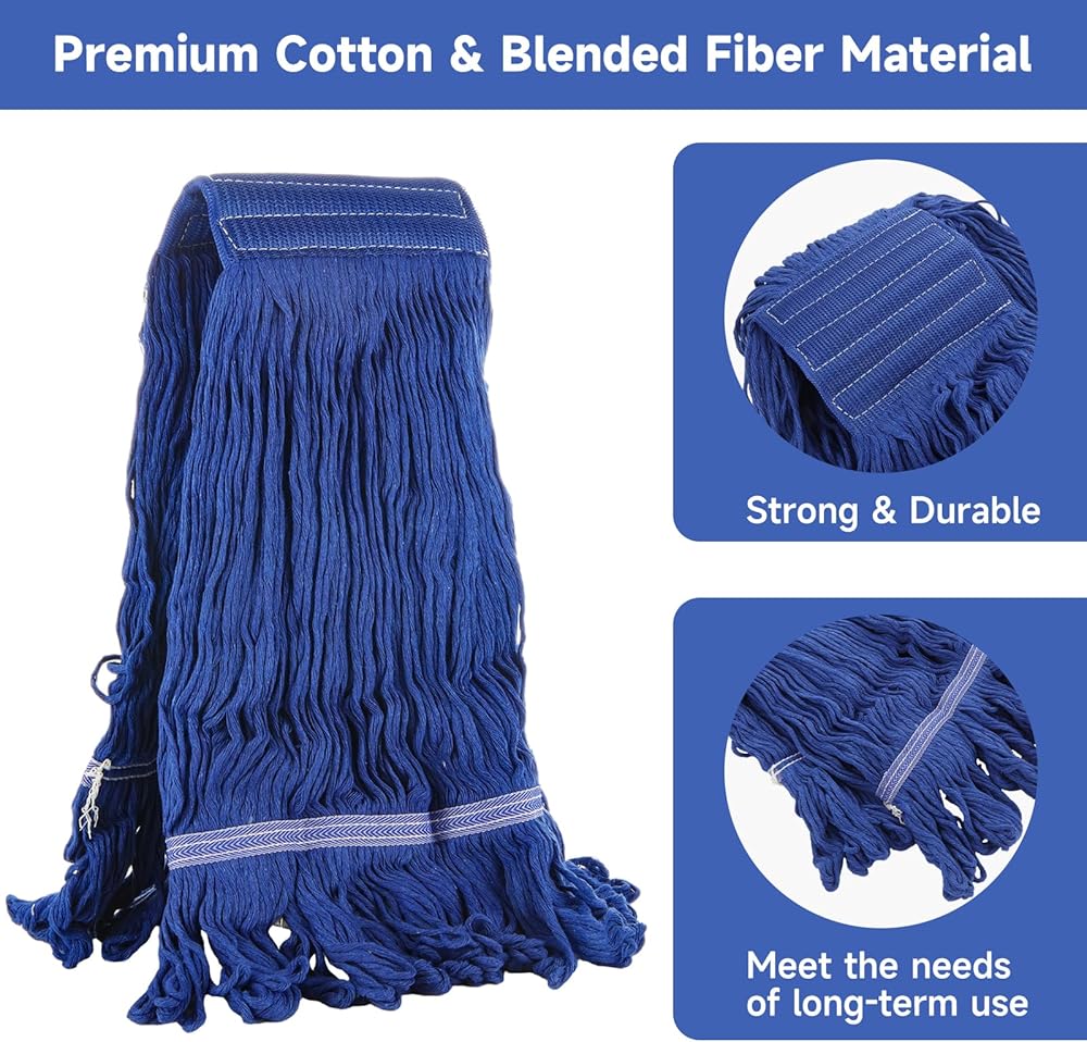 The commercial mop head is made of cotton and blended fiber material, which is strong and durable and not easy to break. Replacement mop heads can withstand frequent use and heavy pressure, maintaining optimal performance over time