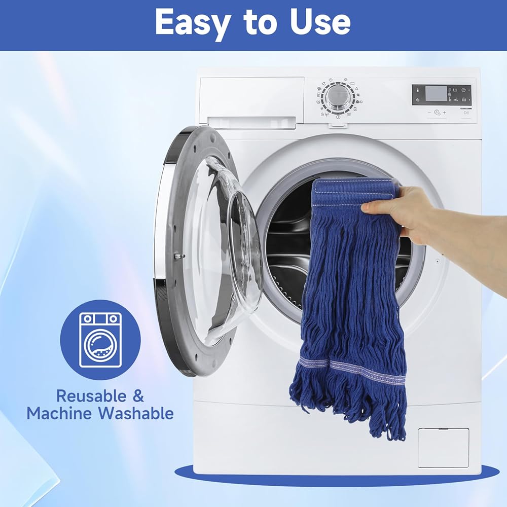Easy to clean and maintain, the replacement mop head is washable and machine washable for durability. The long-lasting fibers allow the commercial heavy-duty mop head to be washed multiple times, making it last even longer