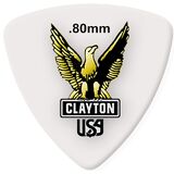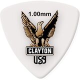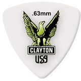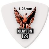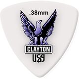 Clayton's Acetal Rounded Triangle guitar picks include 8 gauges in up to 6 different shapes. Each is colored coded by gauge, with gauges ranging from .38mm (thin) to 1.90mm (x-heavy).