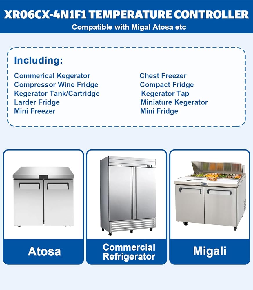 جهاز التحكم في درجة الحرارة USTAR متوافق مع Dixell XR06CX-4N1F1، 120 فولت 50-60 هرتز، مناسب لميجالي أتوسا والثلاجات التجارية الأخرى، مع مجسات مستشعر درجة الحرارة ومشبك