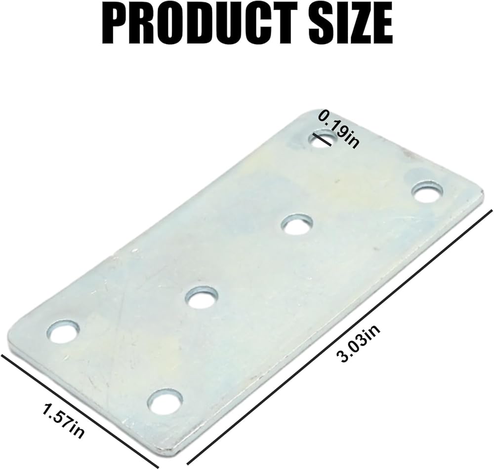 [Package includes]: 40 metal mending plates for connecting or reinforcing wooden pieces; Plate dimensions are 3.1 inches in length x 1.5 inches in width