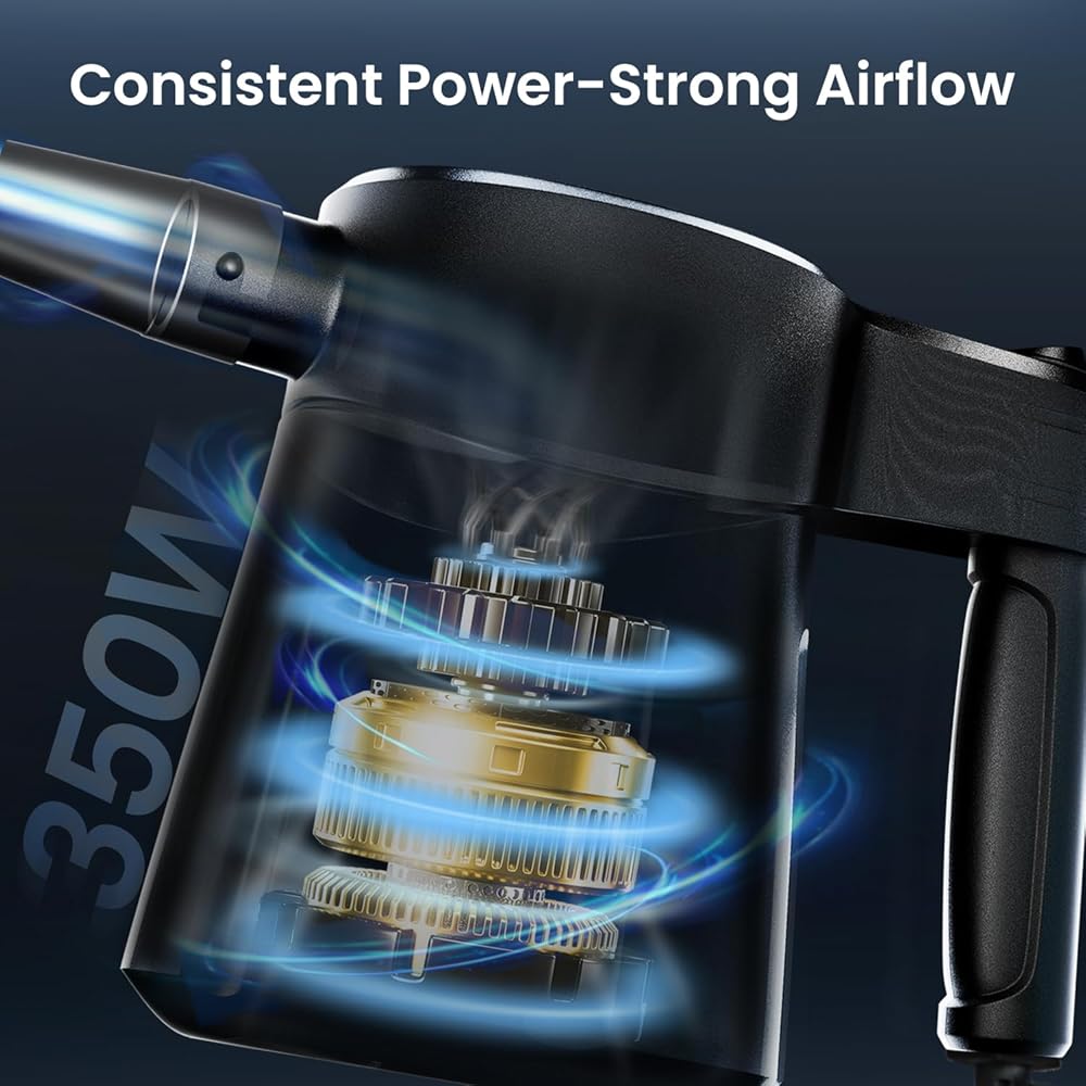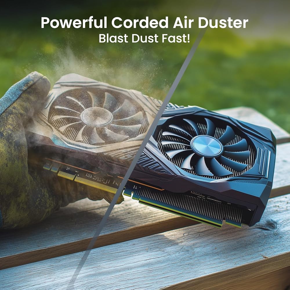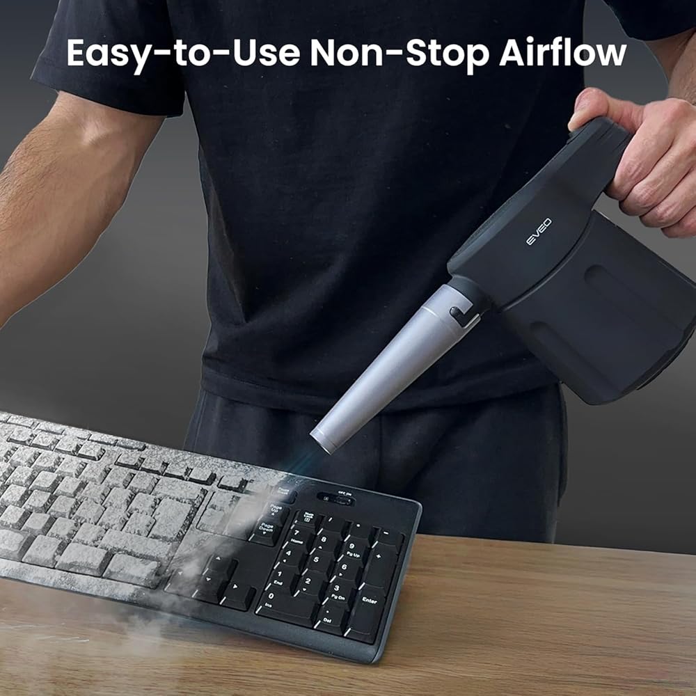 منفضة هواء كهربائية قوية لتنظيف سريع وفعال: توفر منفضة الهواء الكهربائية هذه بديلاً قوياً للهواء المضغوط التقليدي، مما يجعل التنظيف سريعًا وسهلاً. مثالي لمجموعة أدوات تنظيف الكمبيوتر أو كهواء مضغوط لاستبدال أجهزة الكمبيوتر، فهو يزيل الغبار من الأجهزة الإلكترونية الحساسة بكفاءة. يحافظ التنظيف بدون تلامس على أمان أجهزتك مع تقديم نتائج سريعة تدوم أكثر من منفضات الهواء المضغوط.
