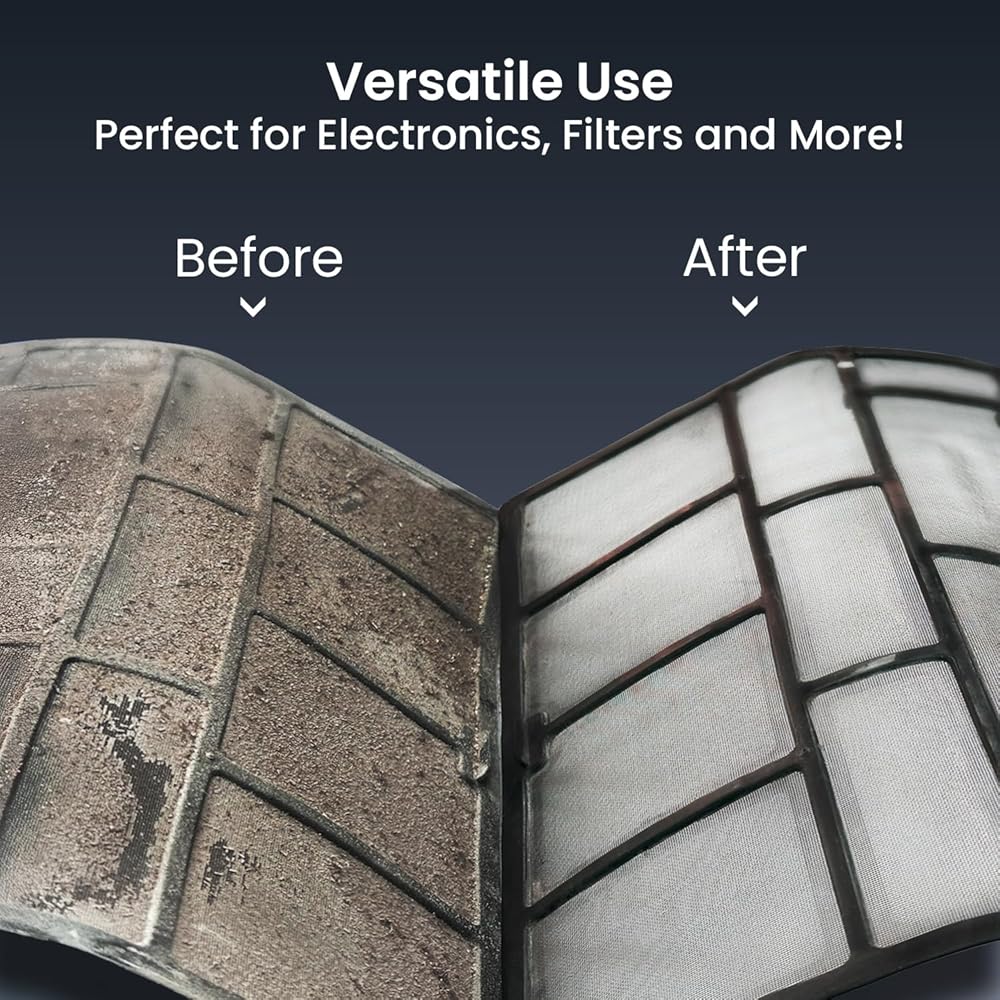 منفضة هواء مثالية لتنظيف أجهزة الكمبيوتر والإلكترونيات: تم تصميم هذه الأداة لتكون منفضة هواء لأجهزة الكمبيوتر والإلكترونيات، وتوفر تنظيفًا آمنًا بدون تلامس لأجهزتك. سواء كنت تستخدمه كمنفاخ غبار للوحة المفاتيح أو منفضة هواء للكمبيوتر الشخصي للمكونات الحساسة، فإن تدفق الهواء القوي الخاص به يزيل الغبار دون الحاجة إلى الاتصال الجسدي. مثالية للحفاظ على الإلكترونيات في حالتها الأصلية بأقل جهد.