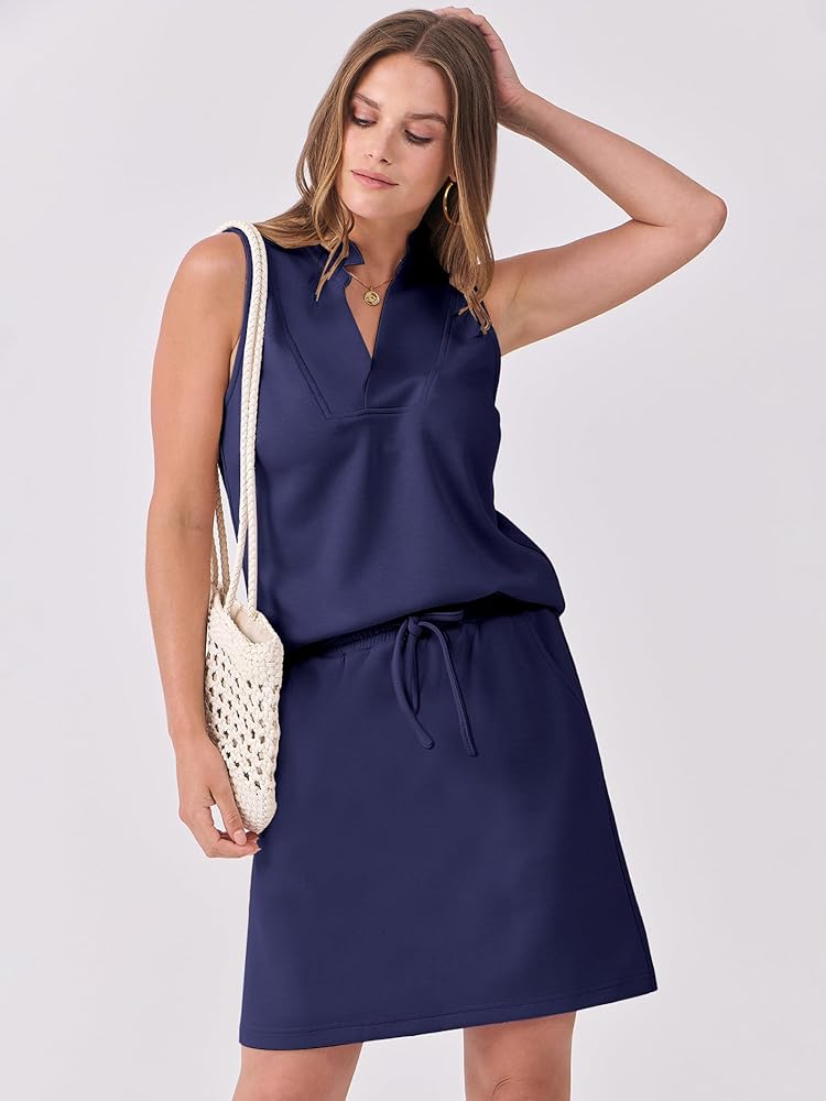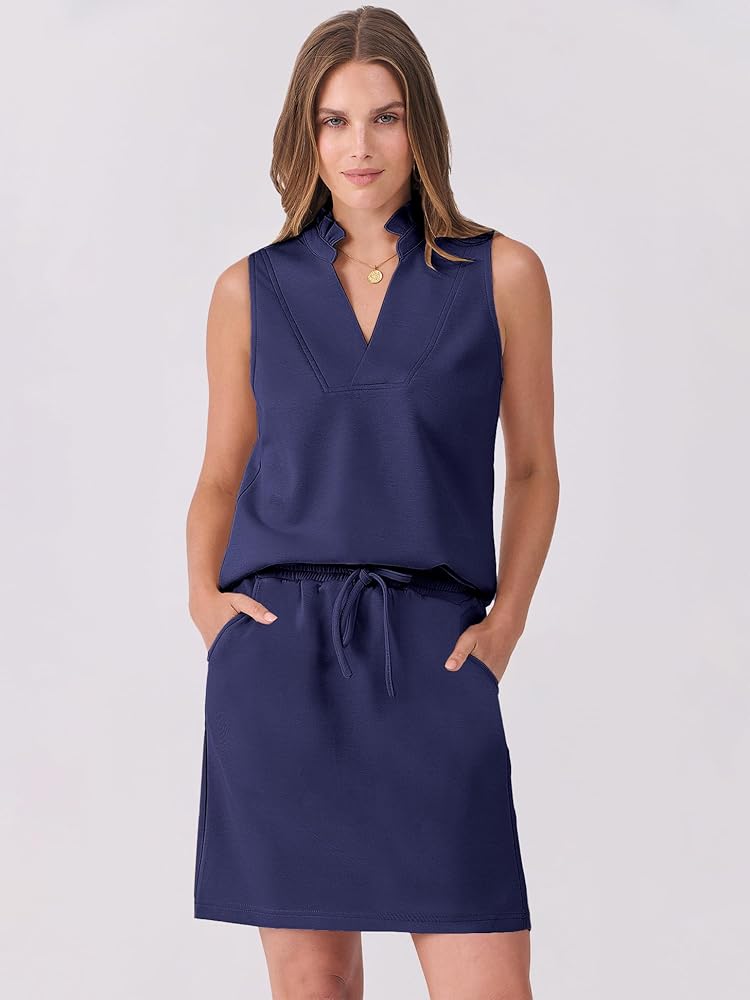 الميزة - يلتقي الأسلوب مع التطبيق العملي في مجموعتنا الرياضية المكونة من قطعتين، والتي تتضمن بلوزة بدون أكمام ورقبة على شكل حرف V وتنورة برباط خصر. تم تصميم هذه المجموعة بجيبين لإبقاء أغراضك الأساسية في متناول اليد