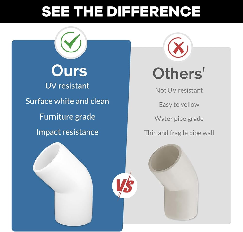 ملاءمة مثالية للأنابيب البلاستيكية مقاس 1/2 بوصة: تحتوي كل عبوة على 20 قطعة تركيب تناسب تمامًا الأنابيب البلاستيكية مقاس 1/2 بوصة الجدول 40. يرجى ملاحظة أن القطر الخارجي الفعلي للأنبوب هو 0.84 بوصة. سواء كنت تقوم ببناء أثاث PVC عالي التحمل مثل أسرة الكلاب أو الأراجيح أو مشاريع الحديقة، فإن موصلاتنا ستوفر اتصالاً آمنًا وموثوقًا.