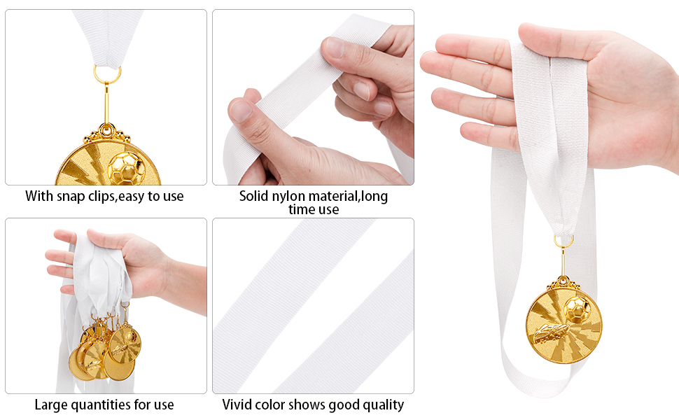4. مخصصة للاستخدام: تم تجهيز أشرطة الرقبة للميداليات بمقاطع SNAP المعدنية ، مما يسمح لك بتعليق الميداليات عليها بحزم ، ومريحة لك لتوضيح الميداليات بسرعة وسهولة.