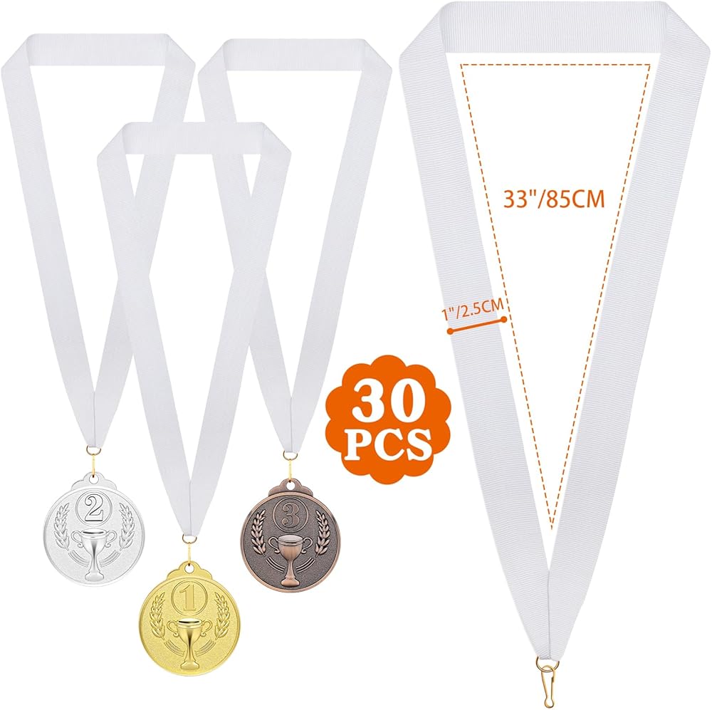 1. يحتوي Package على: الحزمة تأتي مع 30 قطعة من شرائط الميدالية ، وكلها بيضاء ، بما يكفي لك لاستخدامها في الألعاب الرياضية أو الحفلات.