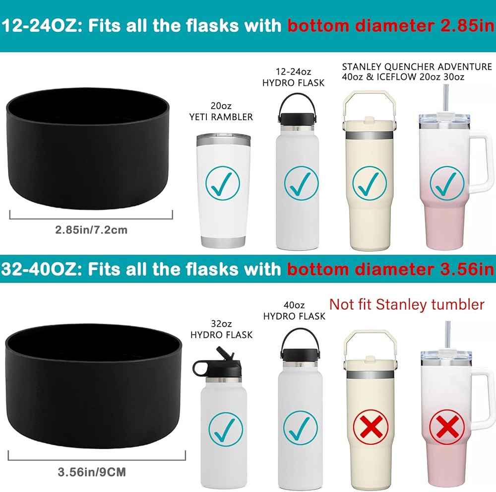 ✅حذاء من 32 إلى 40 أونصة، قطر 3.56 سم - تم تصميم هذا الحذاء المصنوع من السيليكون لفم قارورة مائية واسعة بوزن 32 أونصة و40 أونصة، كما أنه يناسب Owala freesip واللف والقلب بوزن 40 أونصة. إذا كنت ترغب في طلب هذا الحجم لزجاجة المياه النموذجية الأخرى الخاصة بك، يرجى التحقق من القطر السفلي لزجاجة المياه الخاصة بك قبل الطلب