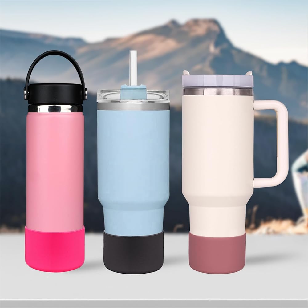 ✅فكرة ذكية - سوف يحمي حذاء قارورة Heyskay المصنوع من السيليكون الجزء السفلي من قارورة الماء من الخدوش والضربات والأضرار، كما أنه لا يوفر أي ضوضاء على المكتب. ألوان ومطبوعات مختلفة لتختار منها يمكنك مزجها ومطابقتها لخلق مظهر جديد لقارورة الماء باهظة الثمن المفضلة لديك