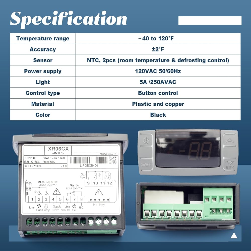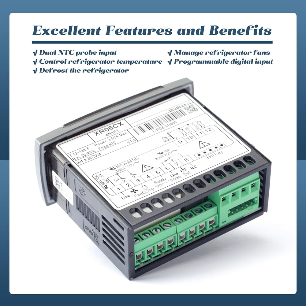 قوية: يحتوي XR06CX-4N1F1 على ثلاثة مخارج للتحكم في الضاغط والمروحة وإذابة الجليد، والتي يمكن أن تكون دورة كهربائية أو عكسية (غاز ساخن)، وحدة التحكم القائمة على المعالج الدقيق تتحكم في درجة حرارة المحطة الطرفية
