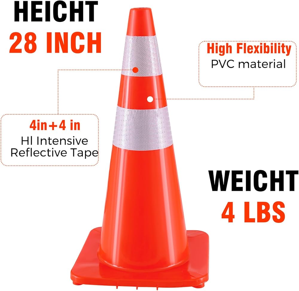 【رؤية عالية وأمان】: تتميز مخاريط المرور مقاس 18 بوصة بلون برتقالي نابض بالحياة وعالي الوضوح وتصميم طوق عاكس 360 درجة، مما يضمن رؤية أفضل في ظروف الإضاءة المنخفضة أو في الليل. تعتبر هذه الرؤية العالية أمرًا ضروريًا لتنبيه السائقين والمشاة بالمخاطر المحتملة، وبالتالي تقليل مخاطر الحوادث وتحسين السلامة العامة.