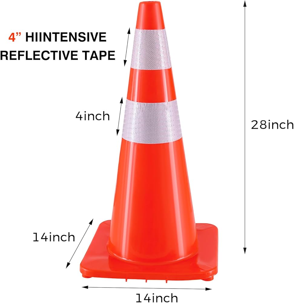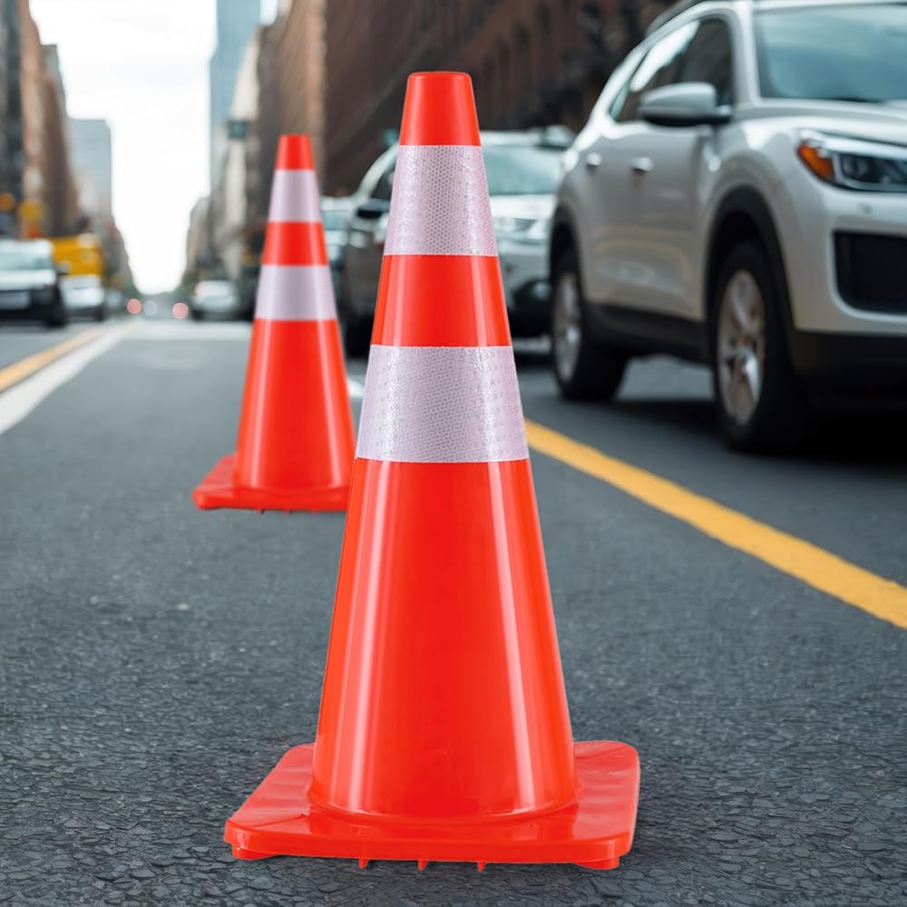 【مخاريط PVC فائقة الجودة】: مخاريط المرور هذه مصنوعة من مادة PVC المتينة، وهي مقاومة للغاية للصدمات، مما يعني أنها يمكن أن تتحمل الاصطدام بالمركبات أو السقوط دون أن تنكسر أو تشوه. تضمن هذه المتانة بقاء المخاريط فعالة وعملية على مدى فترة طويلة، حتى في المناطق شديدة الحركة أو الظروف الجوية القاسية.