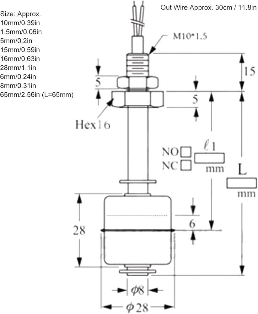 6. The float stroke is 10mm, that is, the control range is 10mm. If the control range is large, two combinations can be used, one long and one short.