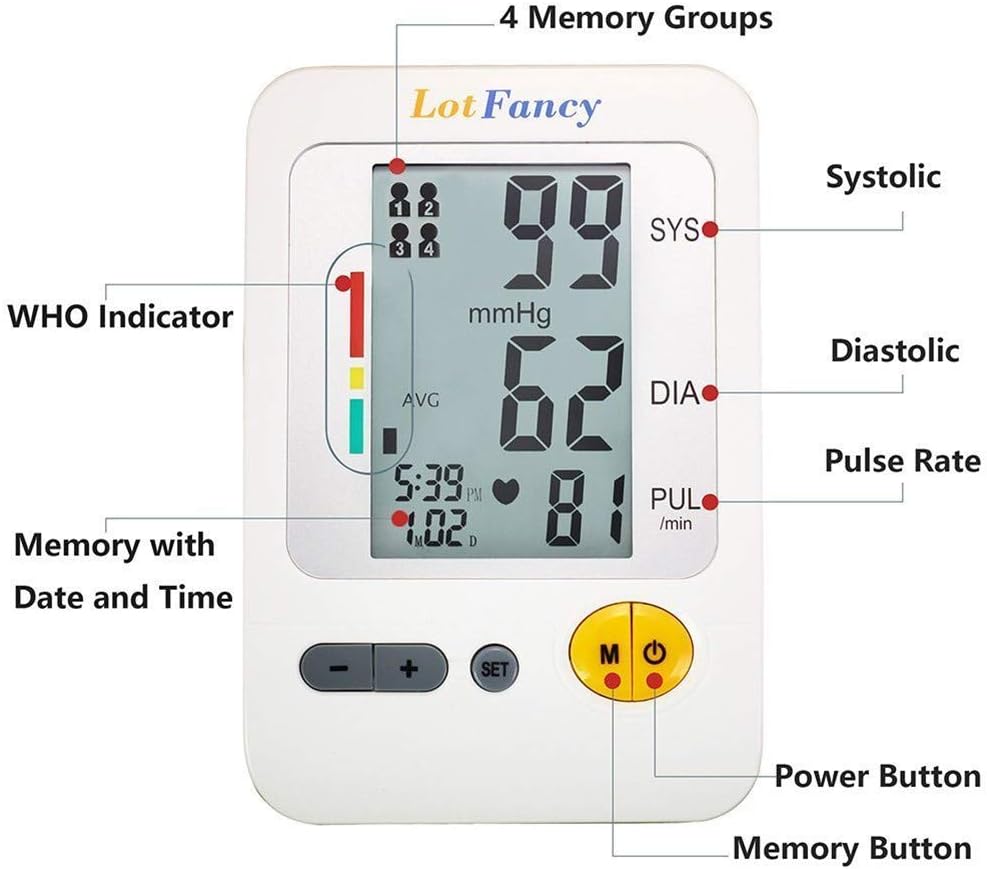 جهاز قياس ضغط الدم من لوتفانسي، مجموعة أدوات أوتوماتيكية لضغط الدم في الذراع العلوي مقاس 8.7-14.2 بوصة، مقياس ضغط الدم الرقمي الدقيق، مقياس نبضات القلب المنزلي المزدوج الطاقة، 4 مستخدم، ذاكرة 120 قراءة، شاشة LCD كبيرة