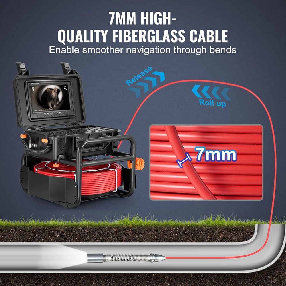 كبل قوي شبه جامد: تتبنى كاميرا تفتيش خط الأنابيب التي يبلغ طولها 98 قدمًا كابل ثعبان شبه شامل مع قطرها 0.28 بوصة (7 مم) ، مصنوعة من الألياف الزجاجية القوية. يتفوق في قابلية المرور والمتانة ، والانحناءات التنقل والأنابيب الطويلة دون عناء. بالإضافة إلى ذلك ، فإنه يحافظ أيضًا على المرونة المتميزة والمتانة في الظروف المظلمة الرطبة ، وتحديد موقع الانسدادات بشكل فعال دون الكسر والتمزيق.