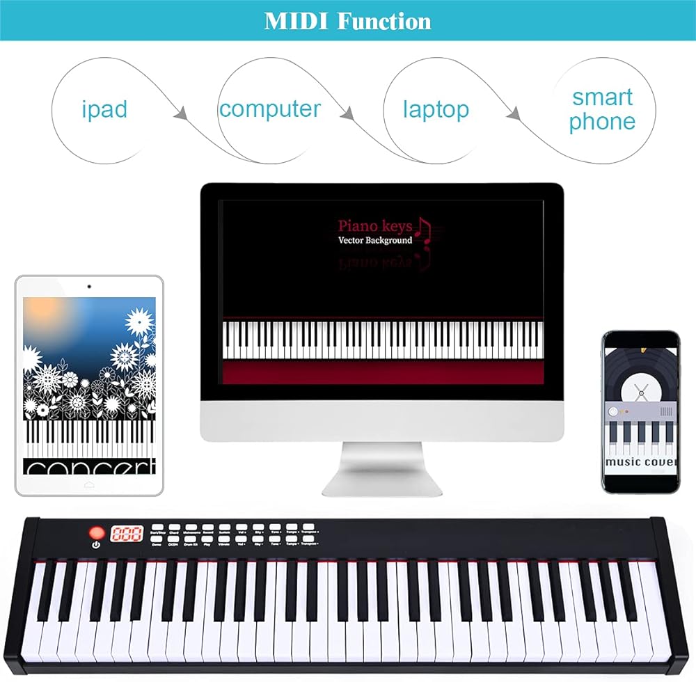 Authentic Playing Experience: Enjoy a realistic playing experience with this 61-key digital piano keyboard that features full-size semi-weighted keys, allowing for easy transitioning between acoustic and digital pianos.