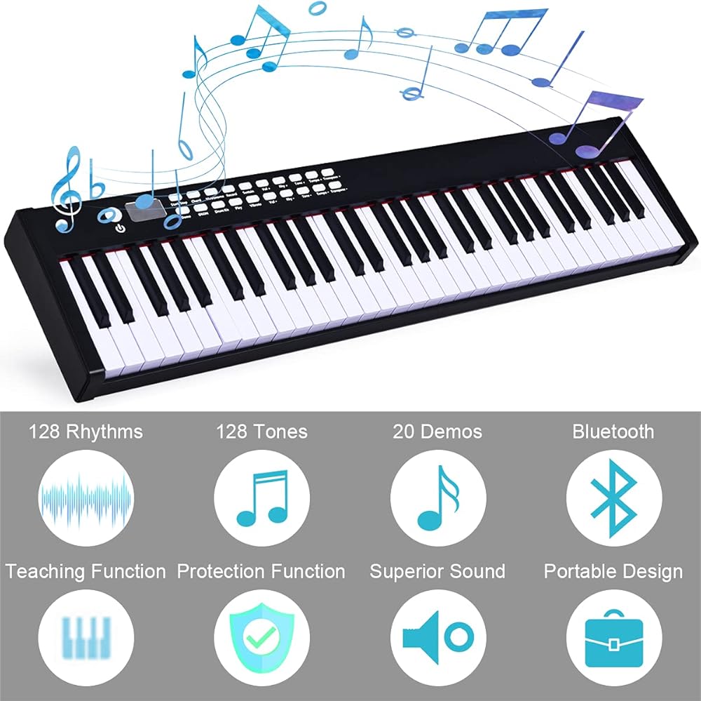 بيانو لوحة المفاتيح ، البيانو الرقمي المكون من 61 مفتاحًا مع مفاتيح شبه مرجحة للمبتدئين ، يدعم البيانو الكهربائي المحمول MIDI/USB والاتصال اللاسلكي ، مع مكبرات صوت استريو مدمجة (أسود)