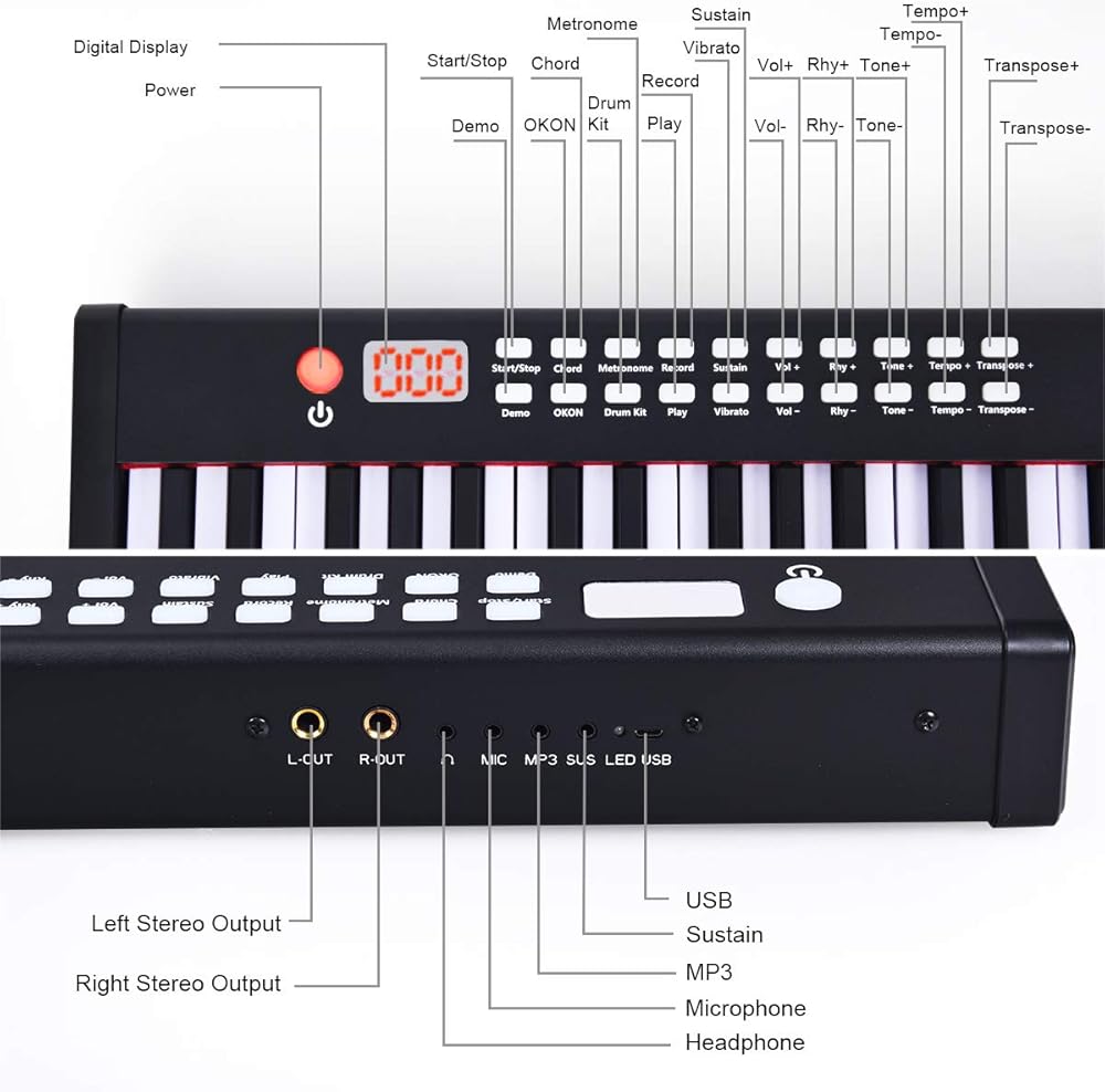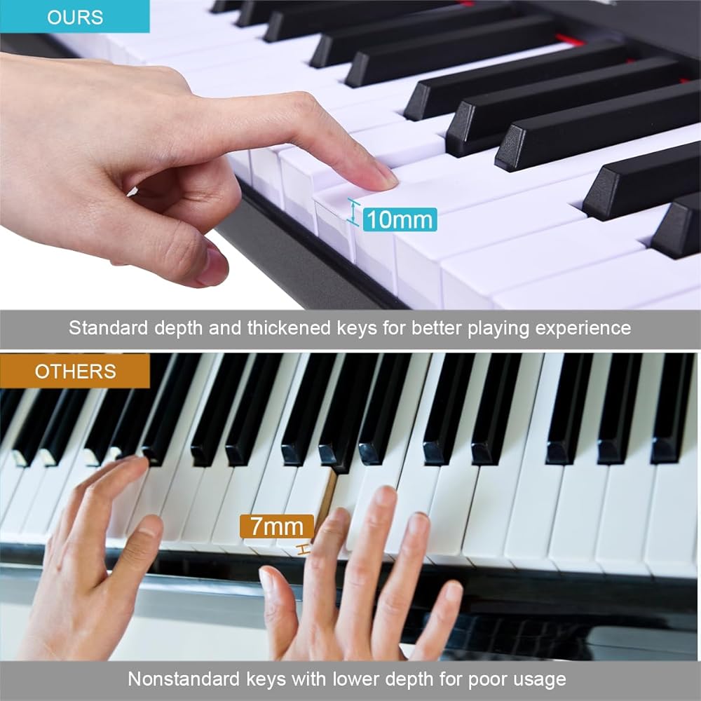 Multifunctional Control Panel: Effortlessly control and customize your sound with the intuitive and user-friendly control panel, allowing you to adjust volume, tempo, and more to meet your musical needs.And there are plenty of function keys, such as record, metronome, sustain and drum kit.