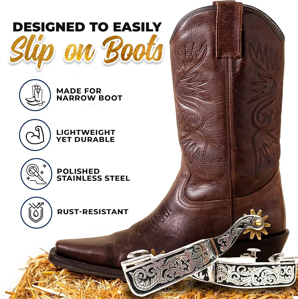 • GREAT FOR VERSATILE USE: These boot spurs are not only suitable for the working cowboy, but also for trail riders, packers/outfitters, or any kind of horse enthusiast.