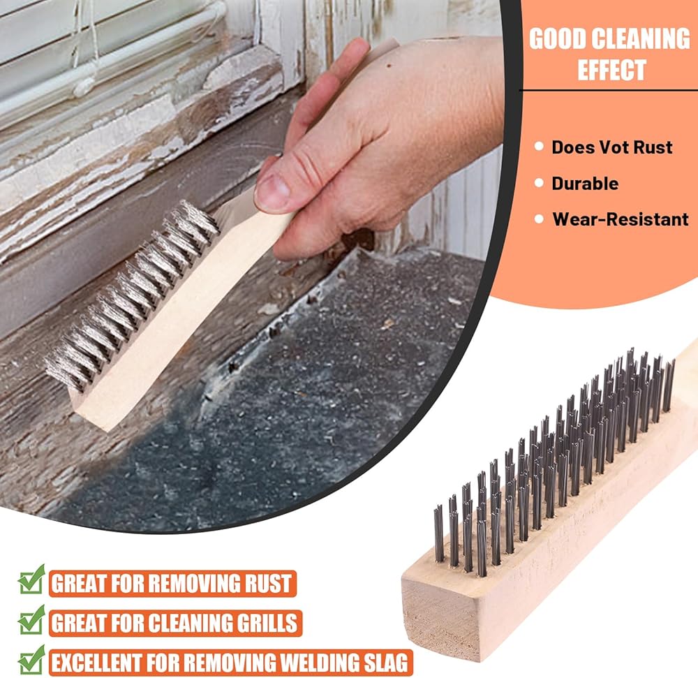 🌟 The wooden handle wire brush is made of stainless and carbon steel wires with smooth finish, the wood ergonomic handle provides excellent hand feeling. Not only for removing paint stains or rust, but also for cleaning threads, grills or tiles.