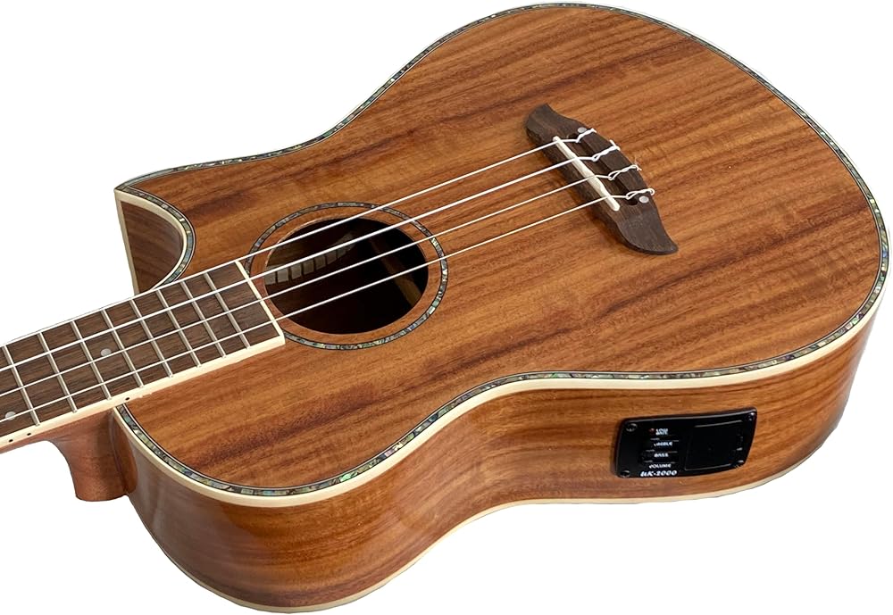 Baritone size, Select Hawaiian Koa top, back & sides, Nyatoh neck, Rosewood fingerboard & bridge, Abalone rosette, Abalone binding, Gloss finish, Grover chrome tuners, EQ pickup system
