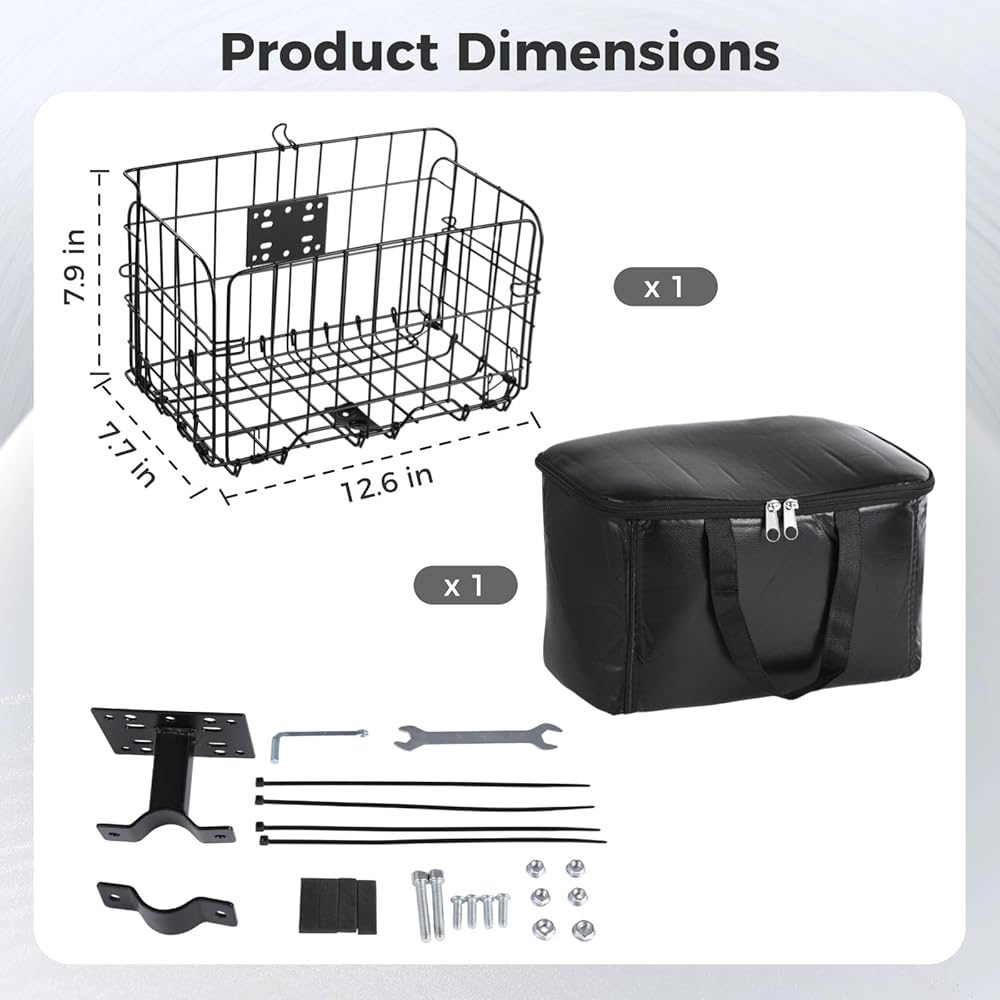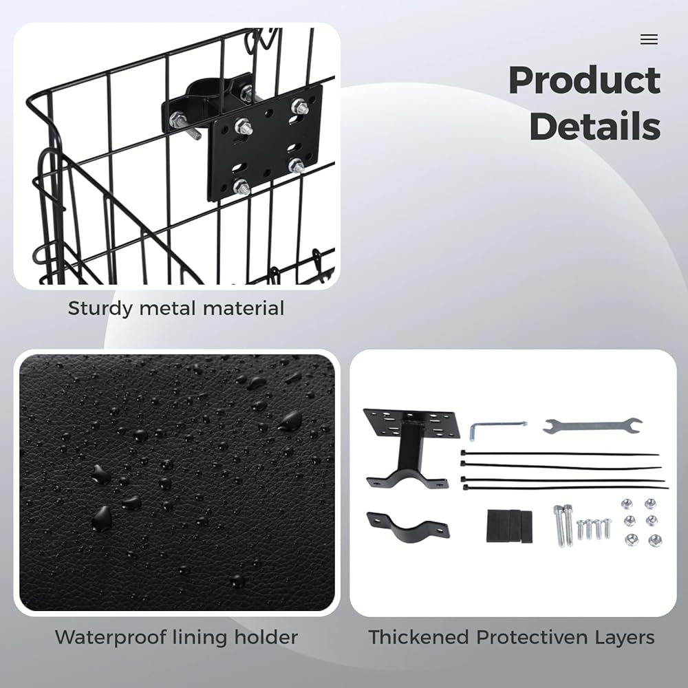 سهولة التثبيت: تأتي سلة الدراجات مع عملية تثبيت سهلة وتتضمن حقيبة بطانة مقاومة للماء مصنوعة من قطن اللؤلؤ لمزيد من الراحة. هذا يضمن أن تظل ممتلكاتك آمنة وجافة أثناء ركوب الخيل