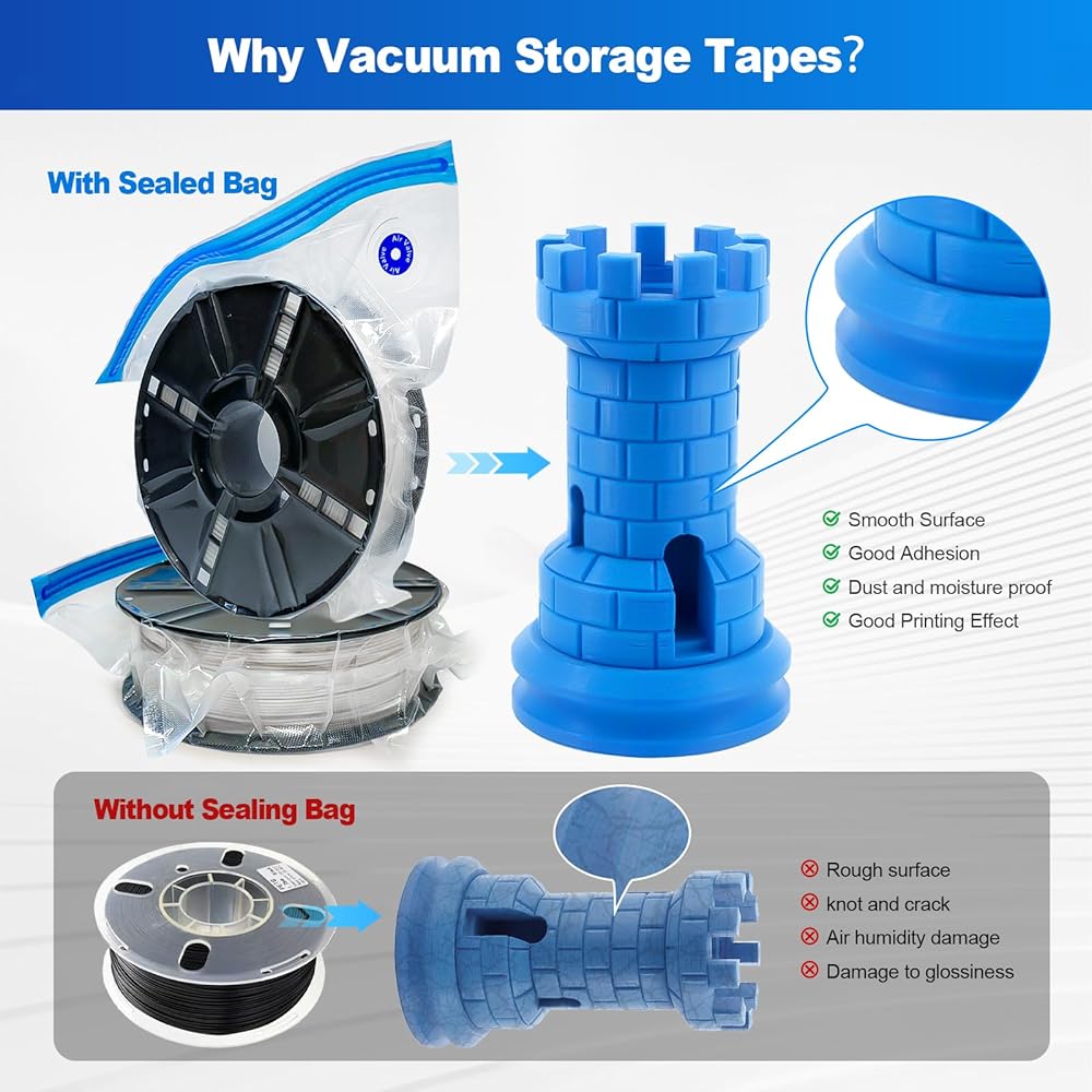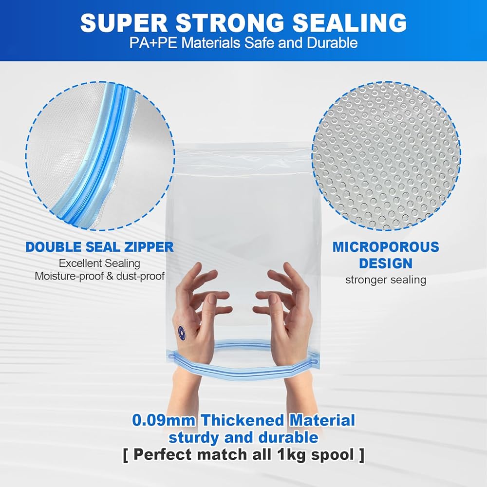 الرطوبة الاستثنائية وحماية الغبار - القلق بشأن الرطوبة والغبار التي تؤثر على جودة طباعة خيوطك؟ تتميز أكياس تخزين فراغ الخيوط هذه بسحور مزدوج وتصميم تفتيش صغير ، مما يمنع الرطوبة والغبار بشكل فعال. مصممة خصيصًا لتخزين الخيوط ، فهي تضمن بقاء خيوطك البكر لنتائج الطباعة من الدرجة الأولى
