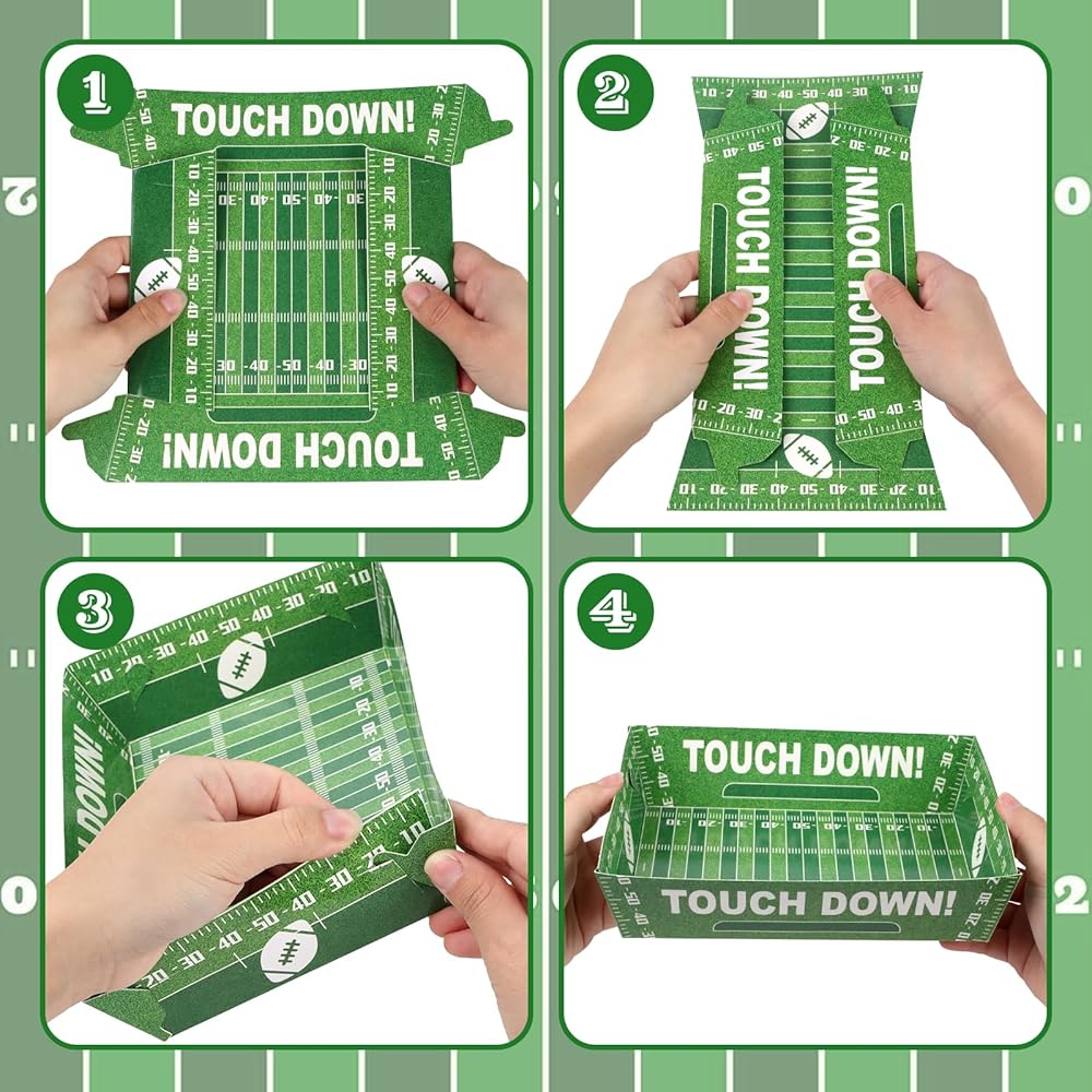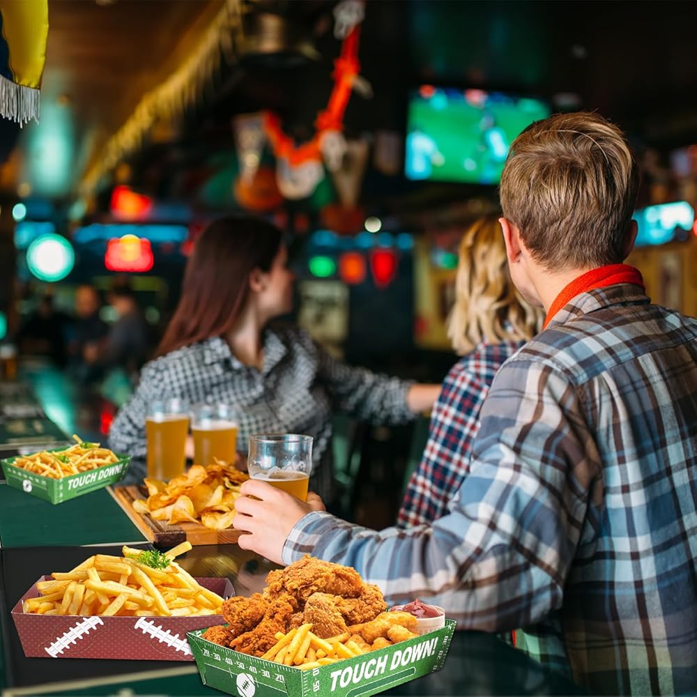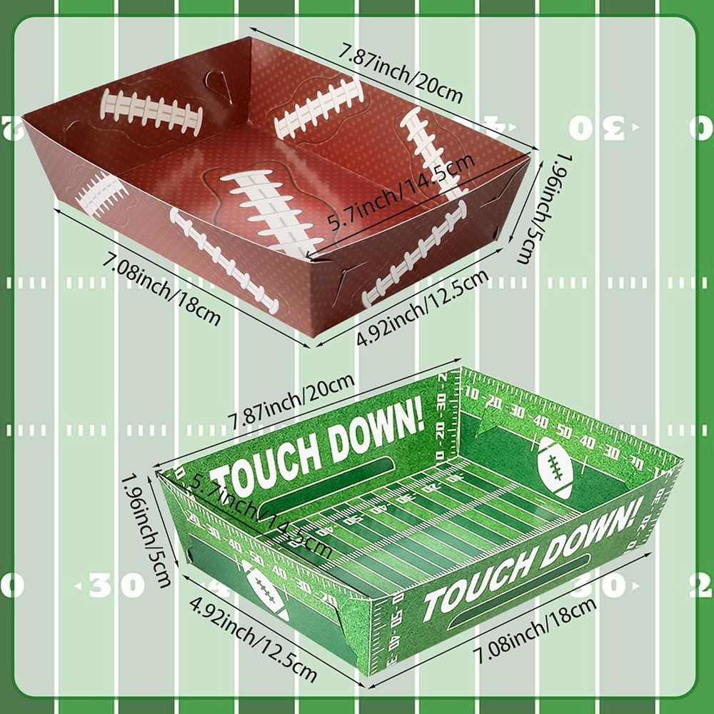 صواني طعام كرة القدم: سوف تحصل على 50 صينية طعام ورقية لكرة القدم بنمطين، 25 قطعة لكل منها، الكمية كافية لإرضاء احتياجاتك الغذائية لعائلتك أو الحفلات، يمكنك أيضًا مشاركة هدايا حفلات كرة القدم هذه مع أصدقائك أو جيرانك