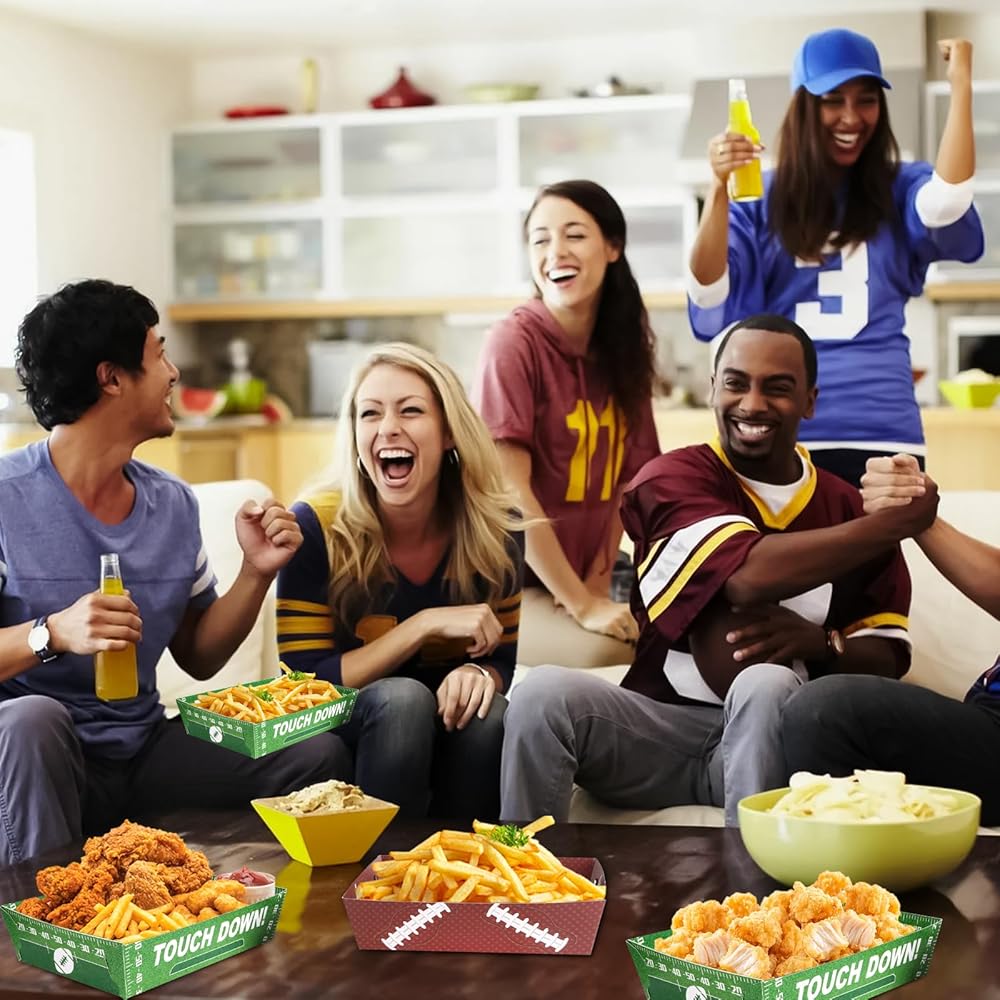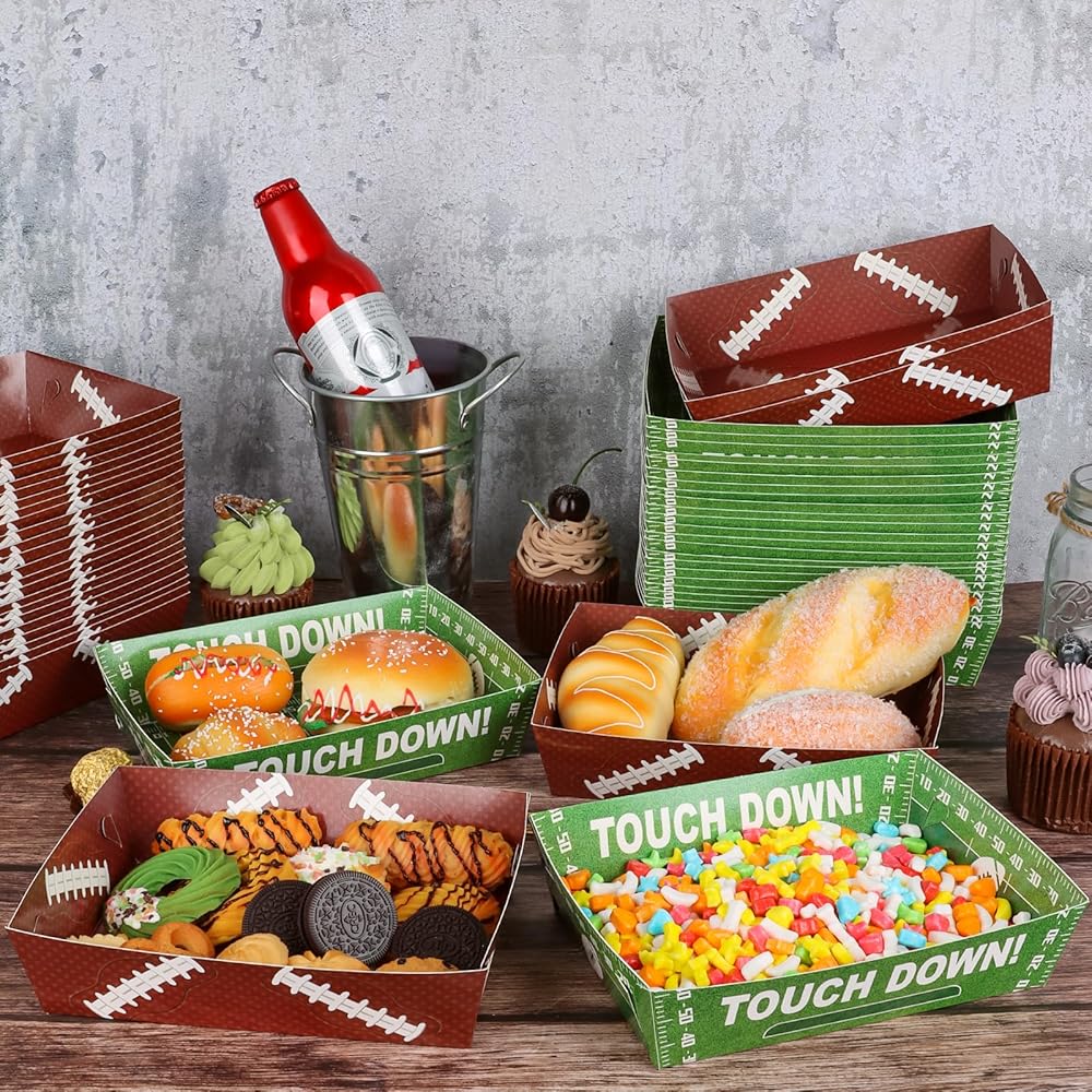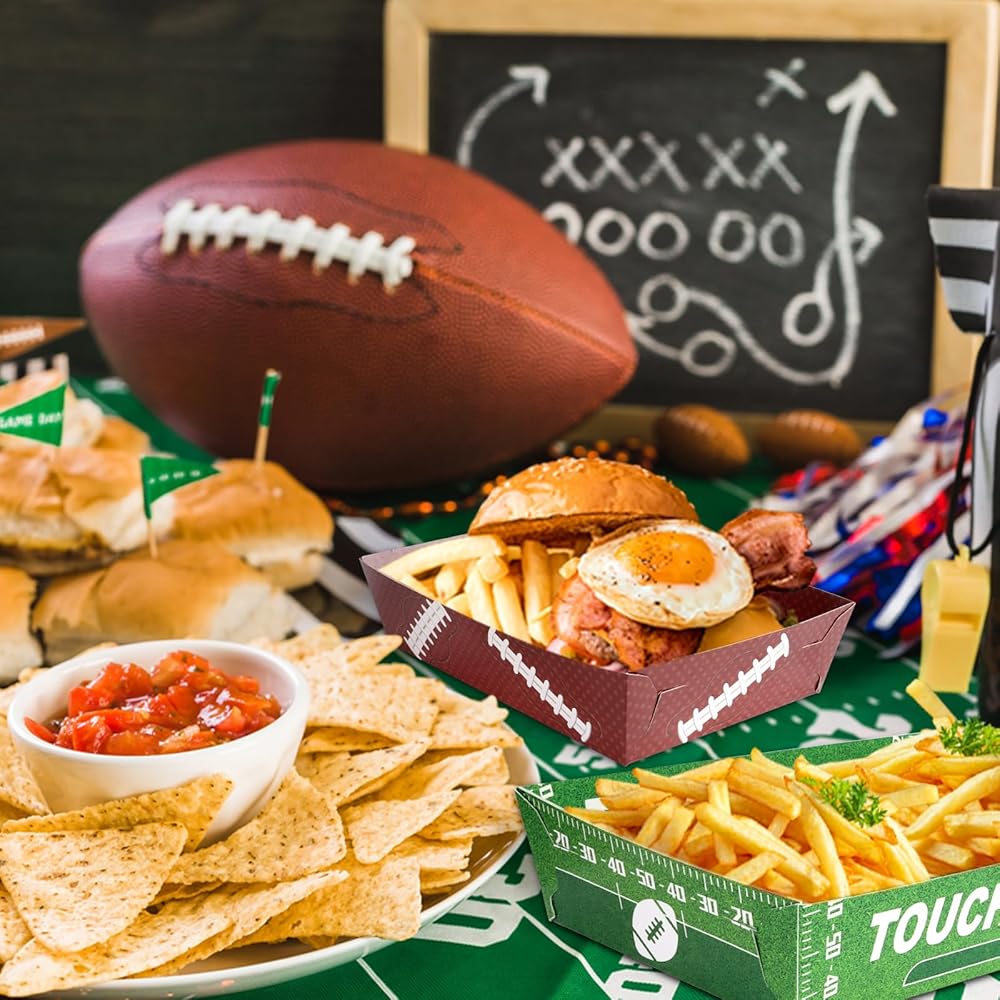 50 قطعة من صواني ورق كرة القدم للاستعمال مرة واحدة، ديكورات حفلات كرة القدم، لوازم حفلات كرة القدم، قوارب الطعام لكرة القدم، لوازم الحفلات الرياضية، صينية الوجبات الخفيفة الورقية لكرة القدم للكرنفال، حفلة عيد ميلاد كرة القدم