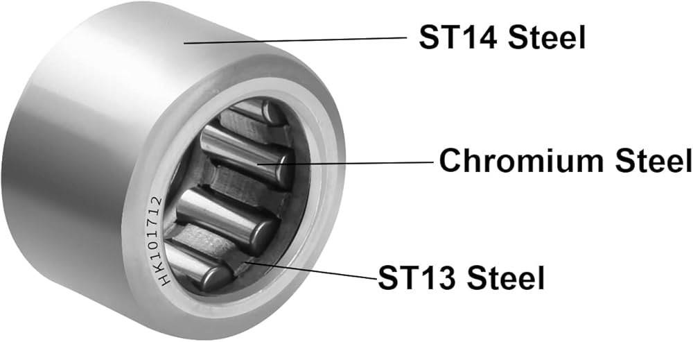 [MATERIAL] - ST14 Steel Drawn Cup, ST13 Steel Cage, GCr15 Needle Roller, high load carrying capacity and stiffness, good heat tolerance.