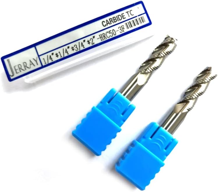 قطعتان من أدوات القطع المطاحن النهائية من الكربيد الصلب للألمنيوم، HRC50 تعمل للألمنيوم، 3 مزامير، قطر 1/4 بوصة، ساق 1/4 بوصة، طول القطع 3/4 بوصة، الطول الإجمالي 2 بوصة