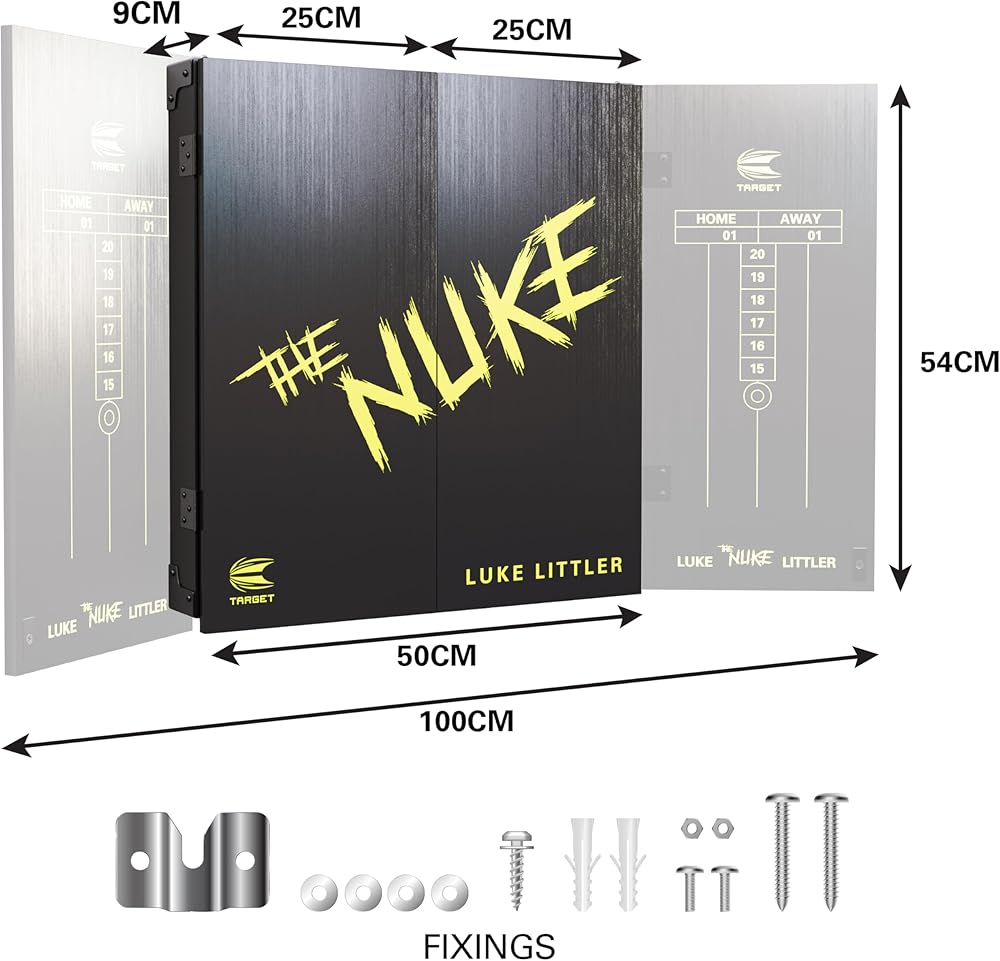 • LUKE LITTLER DARTBOARD CABINET SET: The ultimate dartboard and cabinet setup, designed in collaboration with “The Nuke”, the JDC Youth World Champion, and 2024 PDC World Darts Championship finalist.