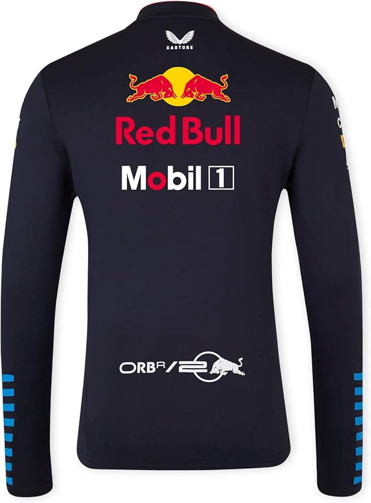 Red Bull Racing F1 Men's 2024 Team 1/4 Zip Midlayer- Navy The official 2024 Red Bull Racing Team 1/4 Zip Midlayer, designed and produced by Castore. The Team 1/4 Zip Midlayer showcases all the official Red Bull Racing team and sponsor branding from the 2024 F1 season and provides additional coverage to protect from the elements. Four-way stretch soft scuba fabric, Funnel neckline, Set-in long sleeves, Centre front quarter zip, Side pockets, Screen-printed graphic at back, Branding at chest, arms, and back. Material: 86% polyester, 14% elastane