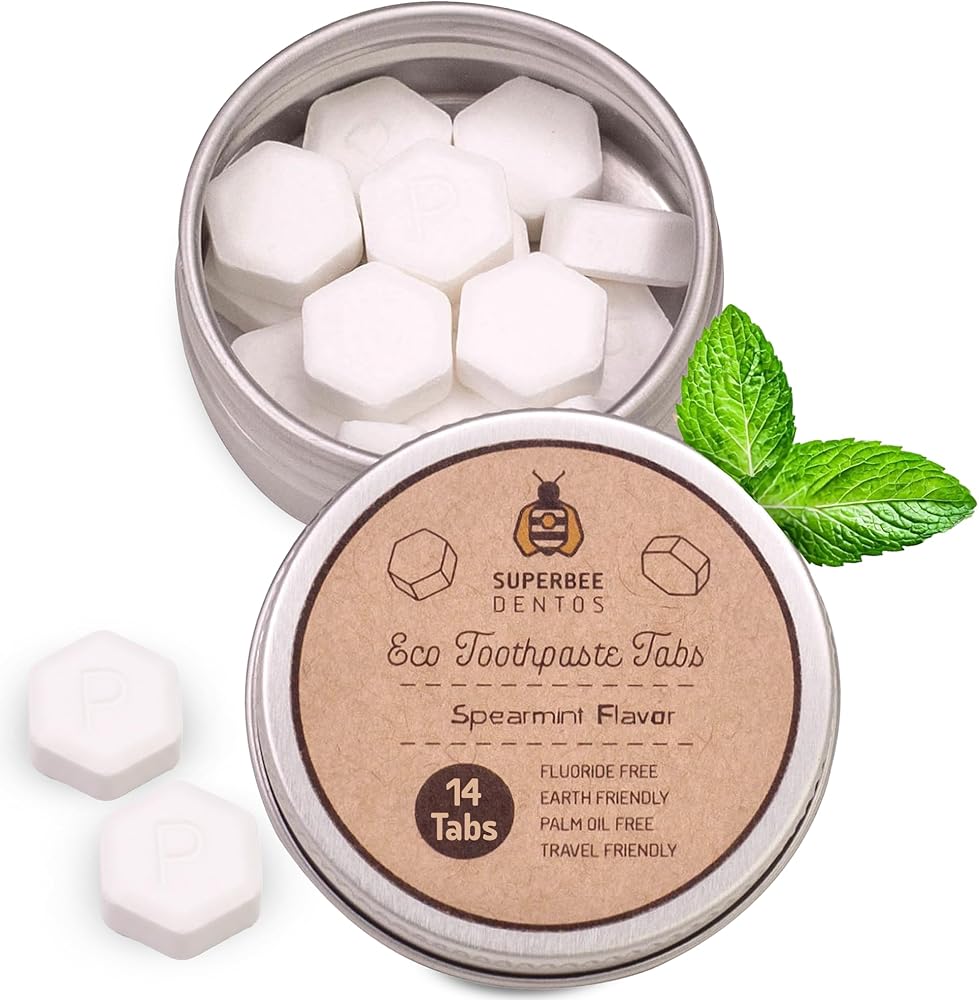 الفلورايد - أقراص معجون أسنان مجانية - أقراص غسول الفم بالنعناع. معجون أسنان قابل للمضغ خالي من الفلورايد حتى لا يضر أسنانك ولثتك. يهتم SuperBee بصحة أسنانك!