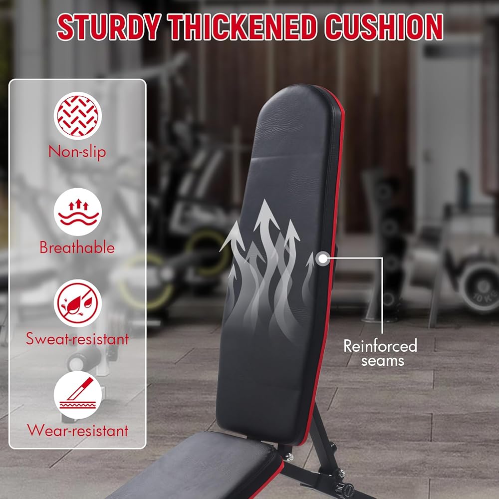 تصميم مدمج وقابل للطي: قم بتحسين المساحة الخاصة بك من خلال مقعد الوزن القابل للطي والموفر للمساحة. يمكن أن يقلل من مساحة التخزين الخاصة بك بنسبة تصل إلى 80%، مما يسمح له بالملاءمة بشكل أنيق في المناطق الأصغر، مما يجعله خيارًا مثاليًا لأي صالة ألعاب رياضية منزلية.
