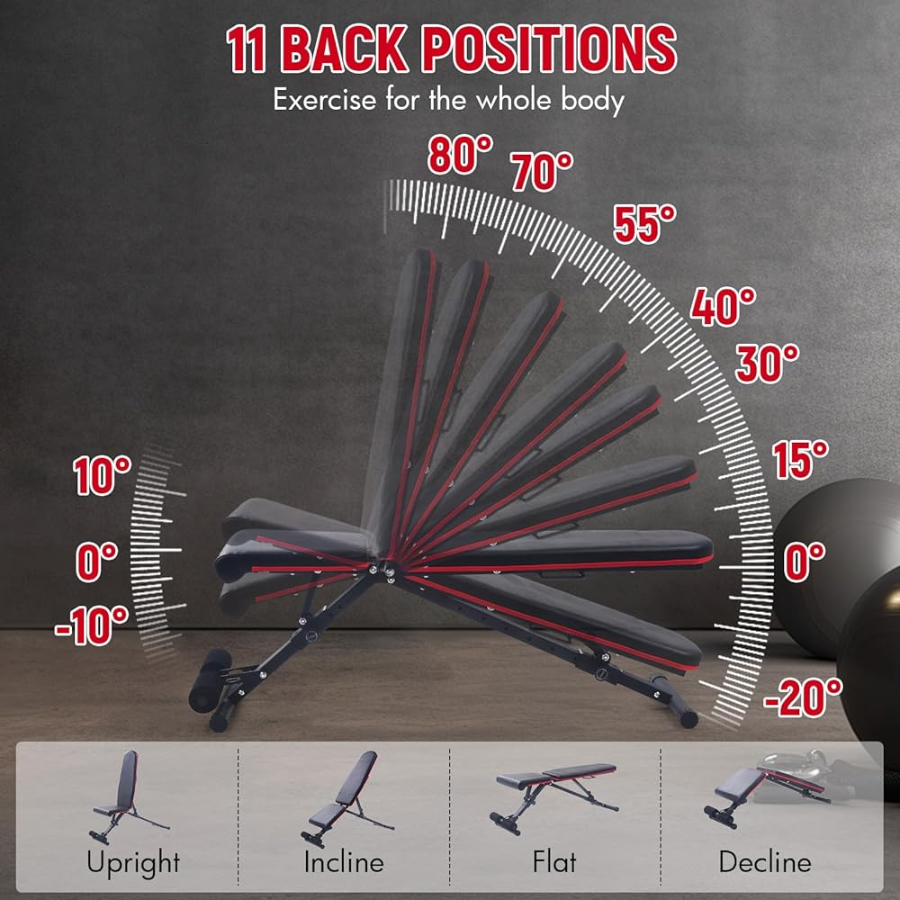 زوايا قابلة للتعديل: تم تجهيز مقعد تدريب القوة متعدد الاستخدامات الخاص بنا بـ 8 تعديلات للظهر و3 تعديلات للمقاعد، مما يسمح لك بالانتقال بسهولة بين الأوضاع المائلة والانحدارية والمسطحة. إنه مثالي لمجموعة واسعة من التمارين، بما في ذلك تمارين الضغط على مقاعد البدلاء والجلوس وتدريبات القوة.