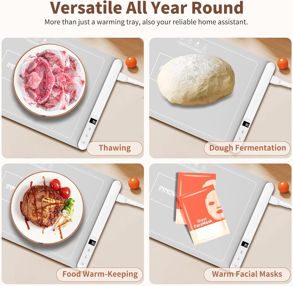 وظيفة المؤقت: تم تصميم صينية التسخين هذه مع وضع راحتك في الاعتبار ولها وظيفة مؤقت. يمكن أن تساعدك هذه الوظيفة في جدولة وقت التسخين، مما يسمح لك بتخصيص وقتك بشكل معقول دون القلق بشأن ارتفاع درجة الحرارة، وبالتالي تعزيز تجربتك.