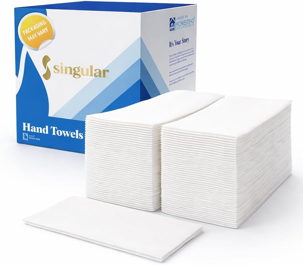 المناشف اليدوية التي يمكن التخلص منها American Homestead للحمام - مناديل الضيوف البيضاء - مناشف عشاء مثالية أو مناشف الحمام للضيوف - 100 Count - Smooth - 15.5 "× 12"
