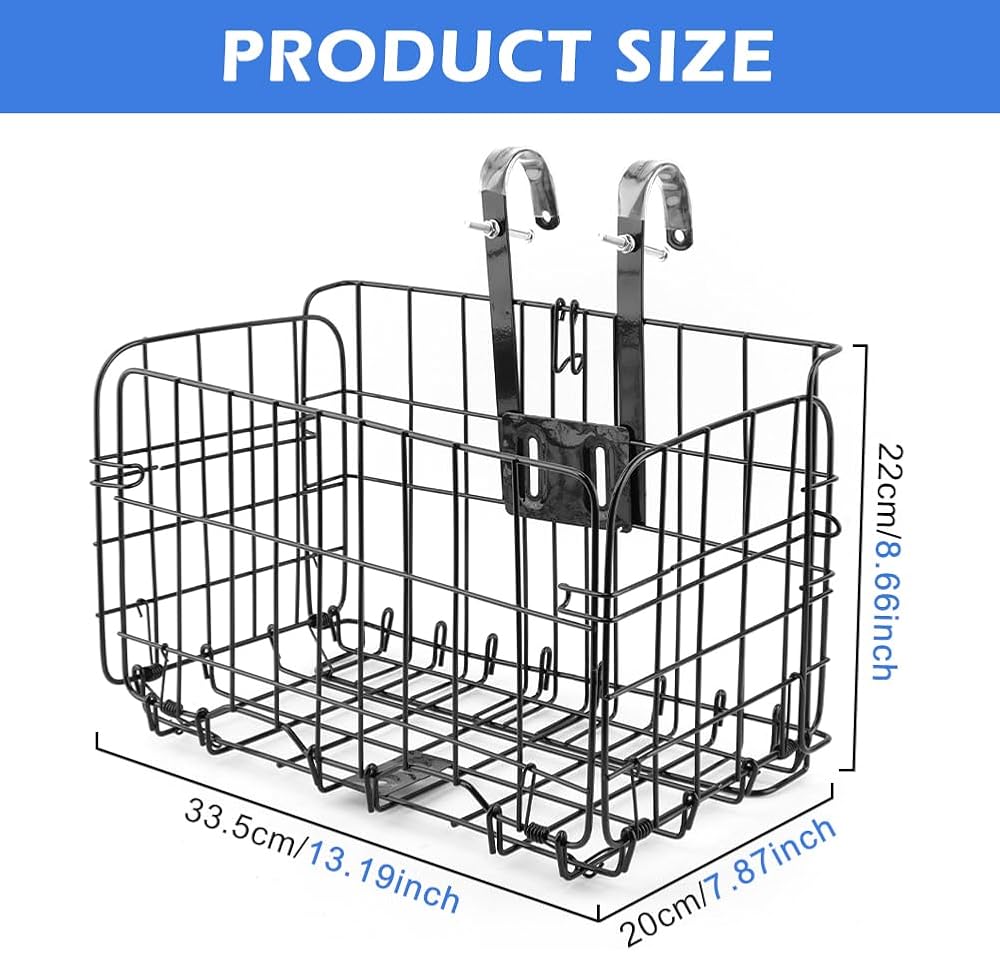 • 【MAIN MATERIAL】Folding bike basket made of steel wire. It is processed through multiple processes and baking varnish technology, and will not rus t in daily use and weathering.