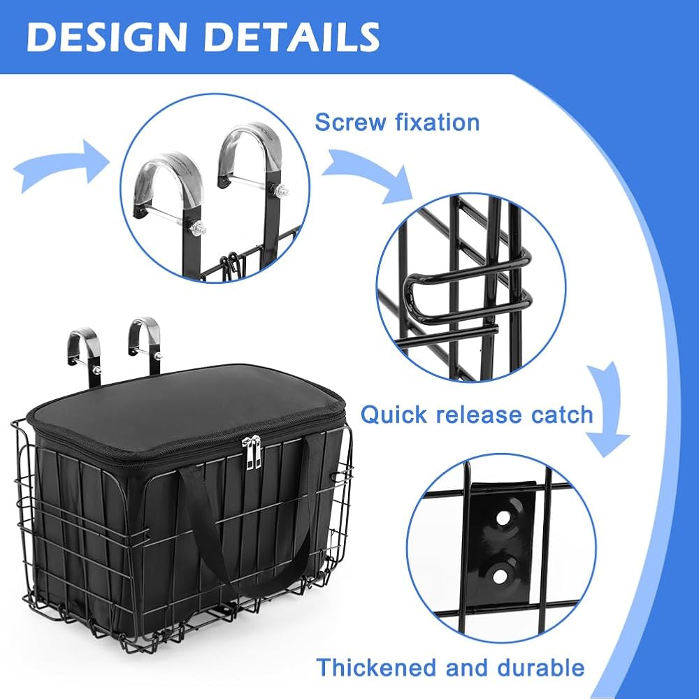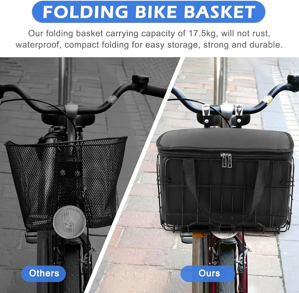 • 【EASY INSTALLATION】Easy for installation and disassemble. The Bike basket can folds up compactly for easy storage and open up in seconds. It fits most folding bikes and road bikes.