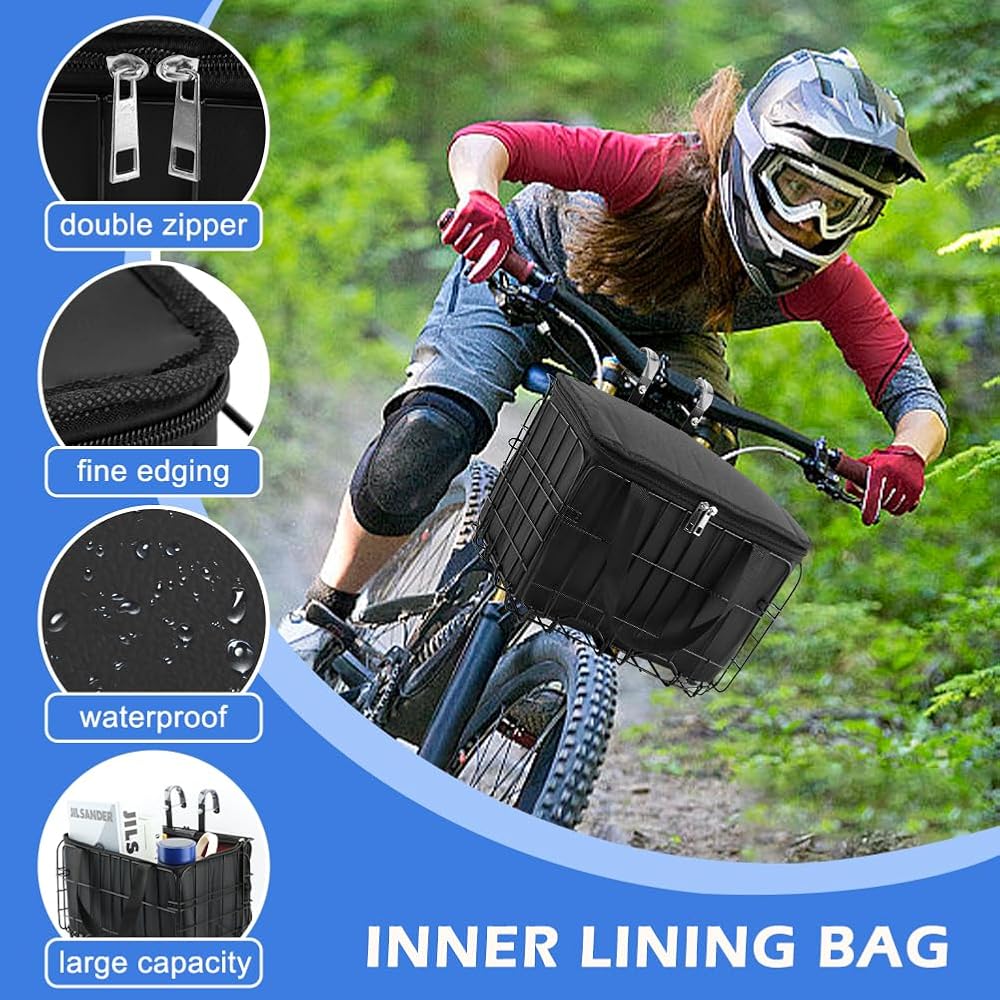 سلة دراجة قابلة للطي ، سلة دراجة خلفية قابلة للطي مع حقيبة بطانة قابلة للإزالة ، سلة دراجة أمامية قابلة للإزالة مع مقابض سهلة التثبيت على المقود الأمامي ، لملحقات الدراجات الجبلية