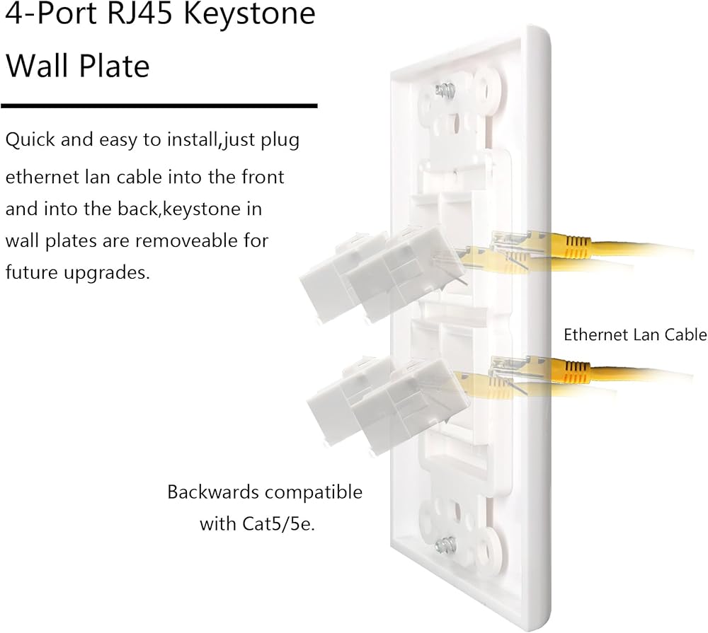 حجر مفتاح RJ45 خلف لوحة الحائط مصمم لسهولة التركيب في مشبك الاحتفاظ لضمان اتصال آمن وغير قابل للتآكل، ولكن أيضًا بالنسبة للمقبس الموجود في لوحة الحائط، يمكن إزالته للترقيات المستقبلية، بعد الاستبدال ببساطة استبدل حجر المفتاح، وتوفير التكلفة.