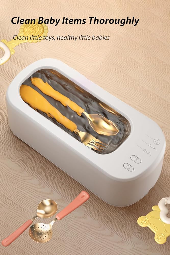 【Safe Material】 The inner tank of the ultrasonic cleaning machine is made of 304 stainless steel, which is healthy and durable. It can also safely clean baby products such as pacifiers and children's toys; the non-slip silicone on the bottom can stabilize the body and reduce noise and vibration.