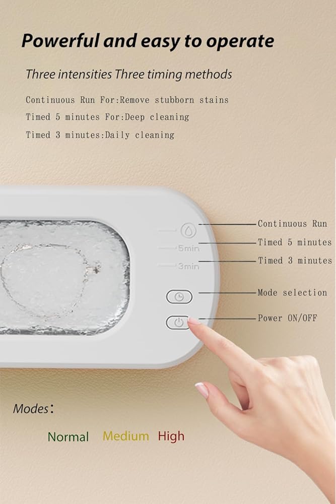 【3 cleaning modes】According to different degrees of dirt, ultrasonic cleaning machine provides 3 cleaning modes. For light dirt, it is recommended to use the 3-minute quick wash mode, for moderate dirt, it is recommended to use the 5-minute enhanced mode, and for severe dirt, it is recommended to use the continuous cleaning mode.