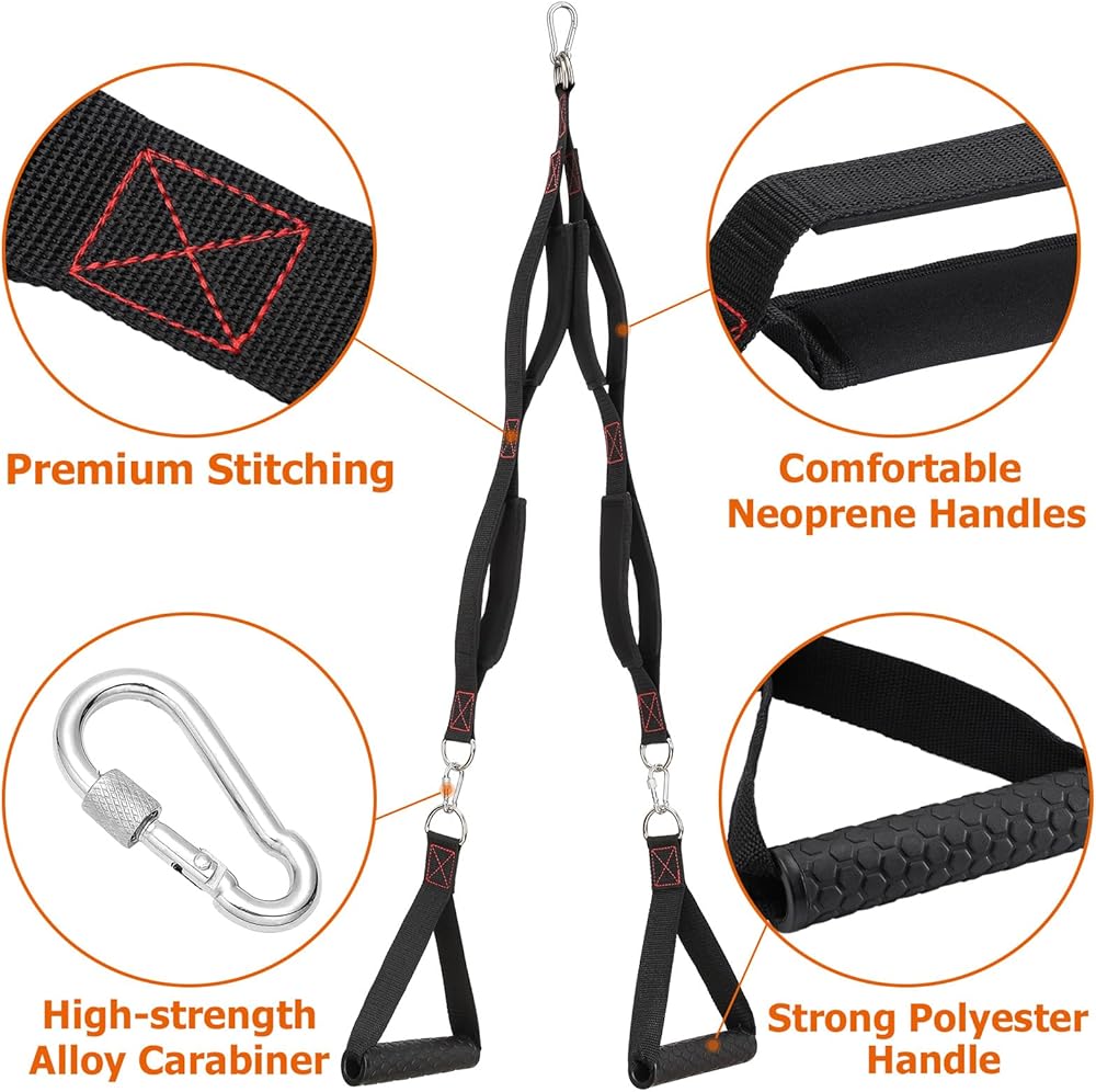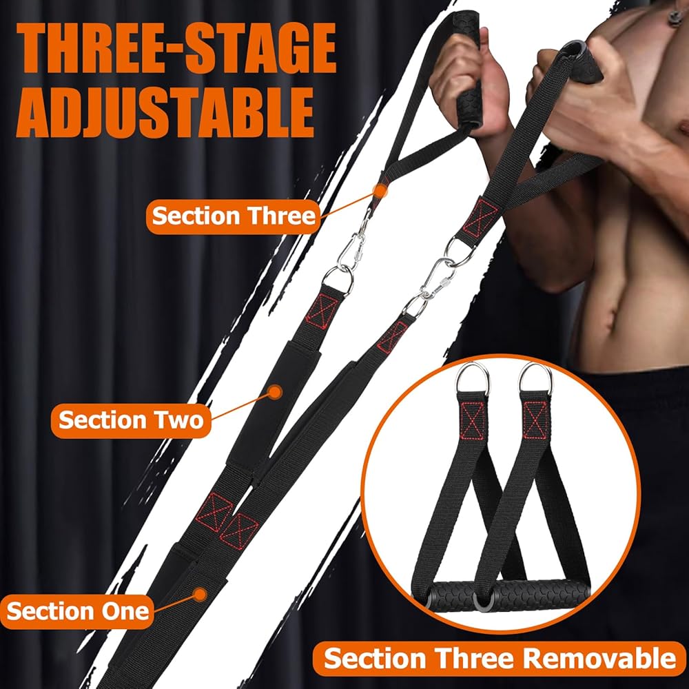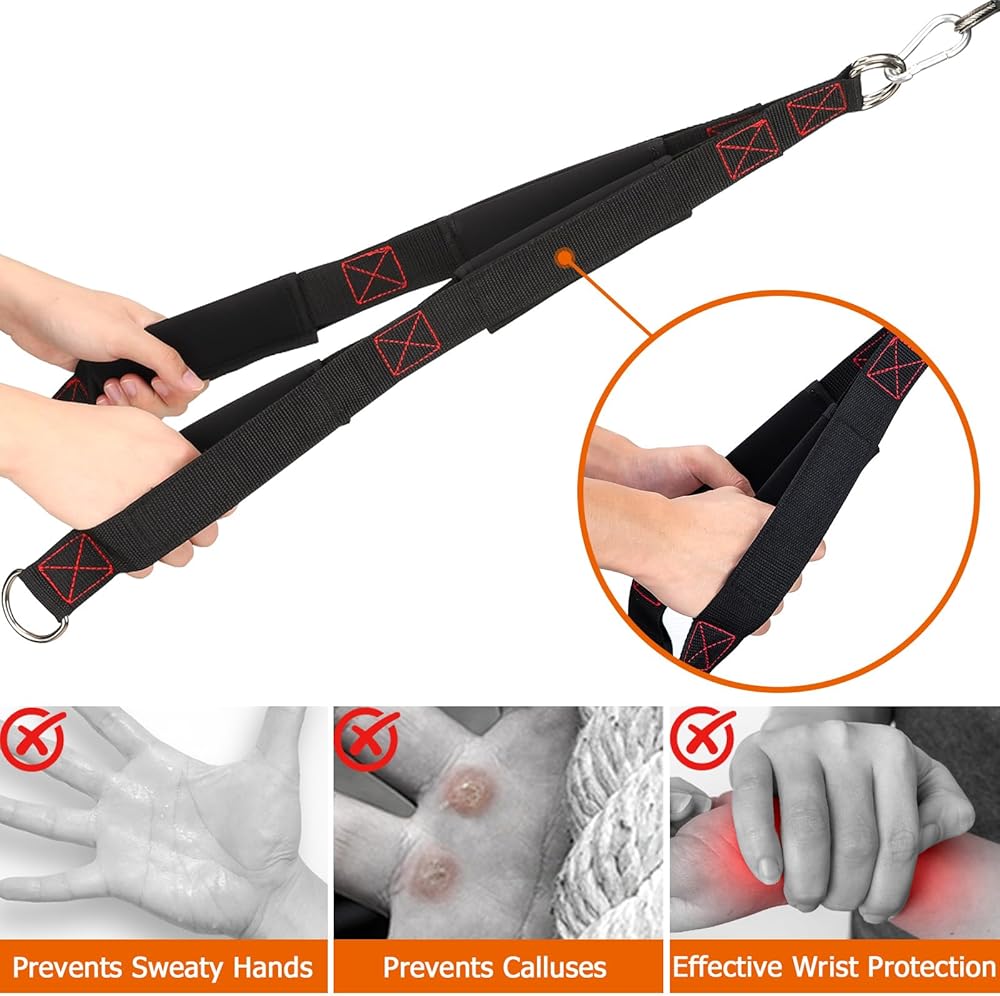 【قبضة مريحة ومريحة】-حبل سحب صالة الألعاب الرياضية المكونة من 3 أقسام مصنوع من نايلون عالي الجودة. مادة النسيج سميكة ، طبقة ، واسعة ، مبطنة من الداخل ، وقد عززت خياطة. يتيح الحشو المدمج قبضة مريحة على حلقة الحبل دون قرصة أو الكالسيك. المقبض غير القابل للإزالة غير القابل للانزلاق واسع ومتين مع أخاديد قرص العسل لقبضة مريحة وشعور برفع ممتاز.