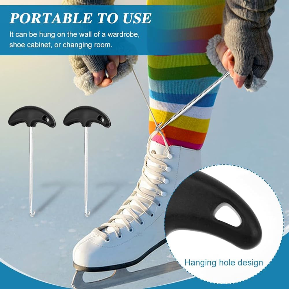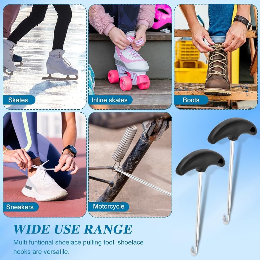 【WIDE USE RANGE】Multi funtional shoelace pulling tool, shoelace hooks are versatile, and you can use them to put on your skates, figure skates, shoelaces, boots, or any type of shoelace.Let your can easier and more convenient to putting on shoes.