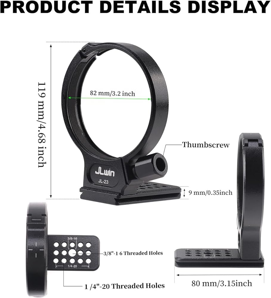 • 【Multiple Mounting Threads】:The lens tripod collar reserved 1/4" and 3/8" threads holes for connecting lens to tripod directly.
