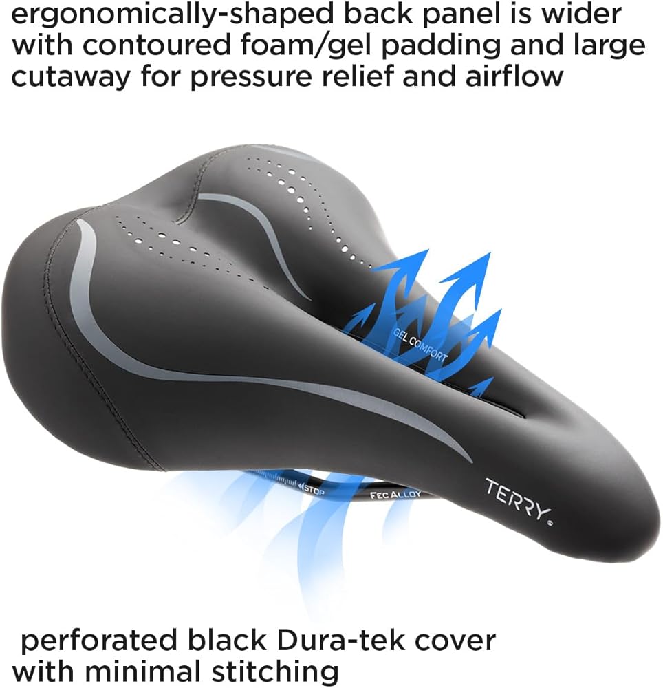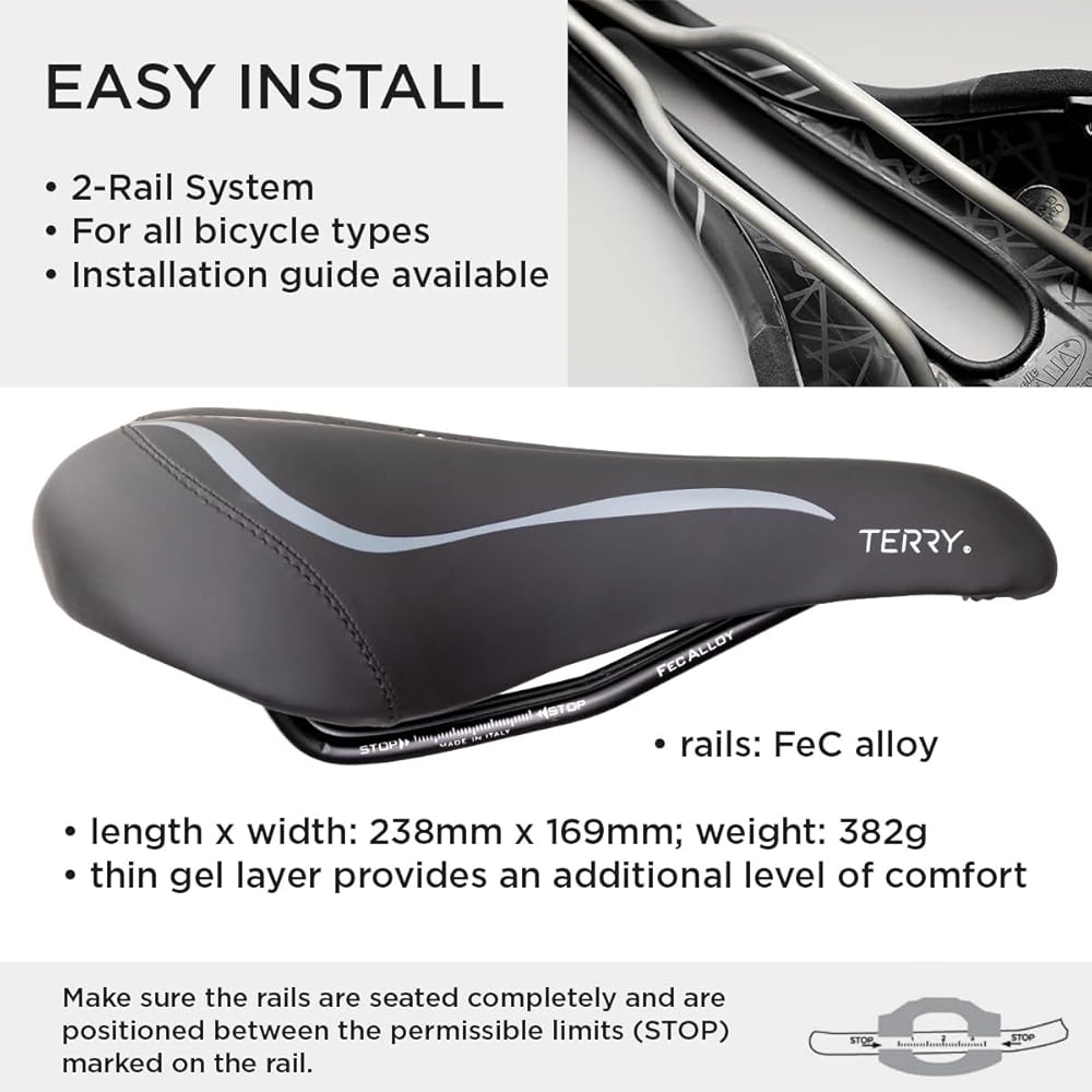 Terry Liberator X Gel Italia - سرج الدراجة النسائية - طبقة جل رقيقة مريحة تحت غطاء صناعي من Dura-Tek
