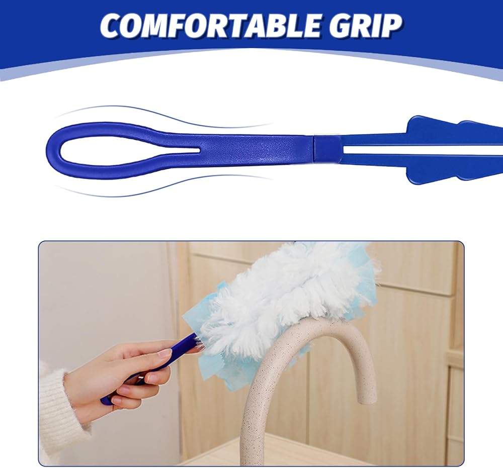 مقبض ممسحة منفضة ممتدة متوافق مع عبوة منفضة الغبار، مقابض منفضة بديلة، مقبض ممتد، مقابض طول قابلة للتعديل فقط (3، أزرق)