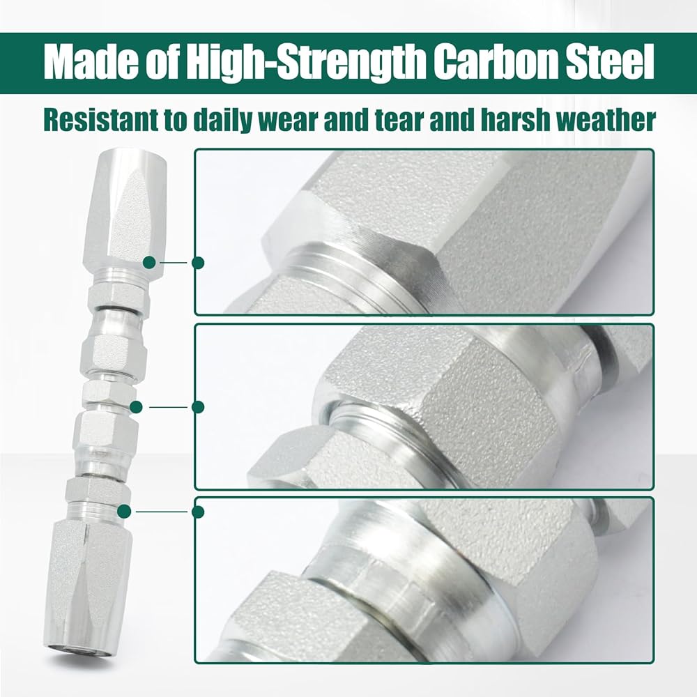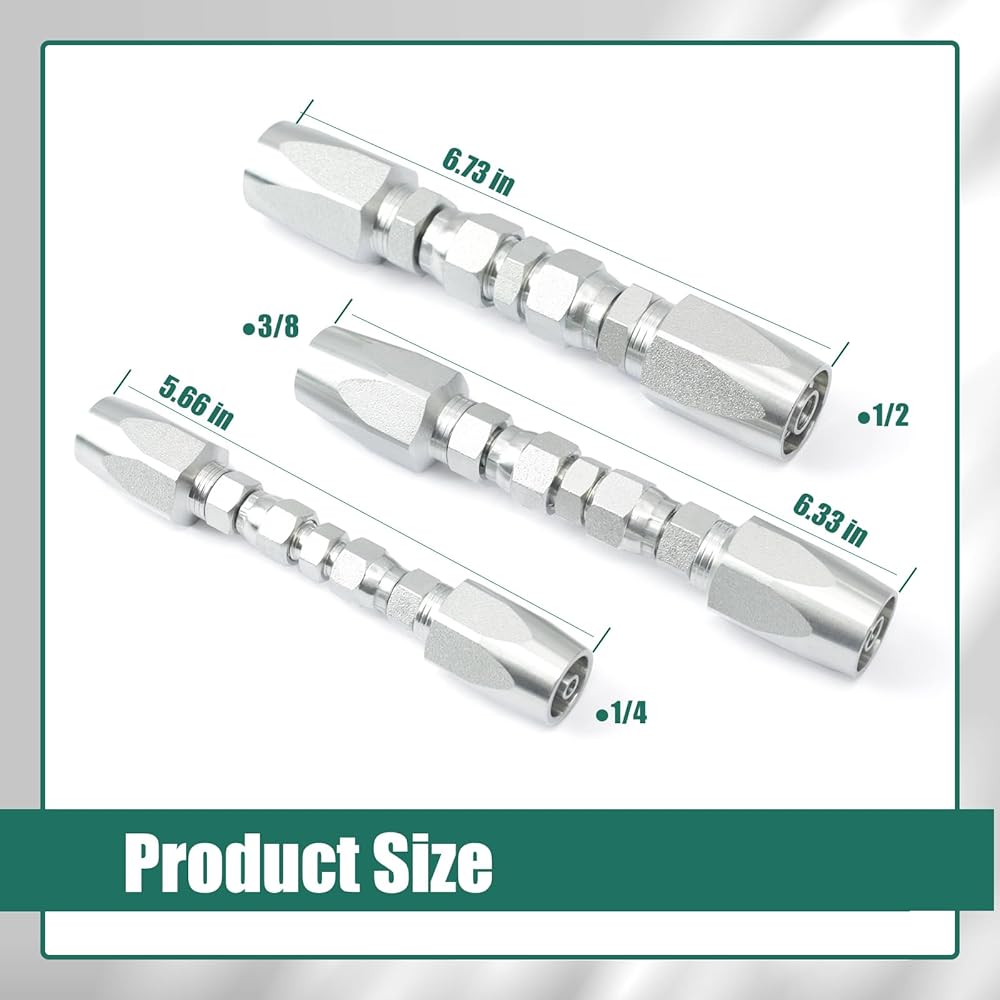 المواصفات: مجموعة إصلاح خرطوم هيدروليكي واحدة 1/4 بوصة قابلة لإعادة الاستخدام #04. تستخدم مع خرطوم بقطر داخلي 1/4 بوصة وقطر خارجي عند 0.59 بوصة. مجموعة إصلاح خرطوم هيدروليكي واحدة 3/8 بوصة قابلة لإعادة الاستخدام #06. يُستخدم مع خرطوم القطر الداخلي 3/8 بوصة والقطر الخارجي 0.68 بوصة